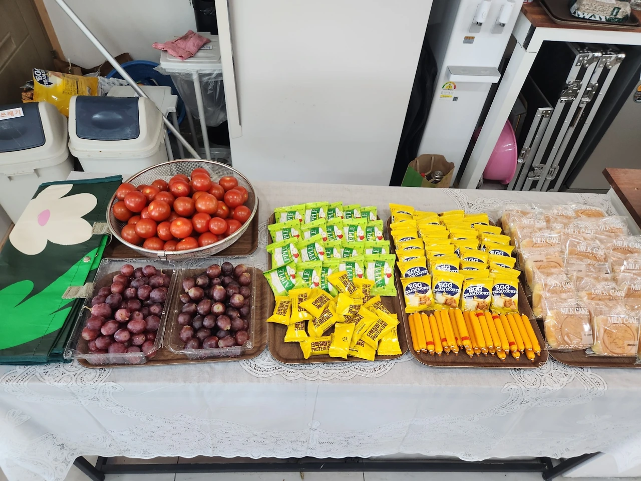 정성껏 준비된 간식과 시원한 한줄기 황령산 산바랑을 만나 잠시 쉬어갈 공간 물만골문화센터가 된다.