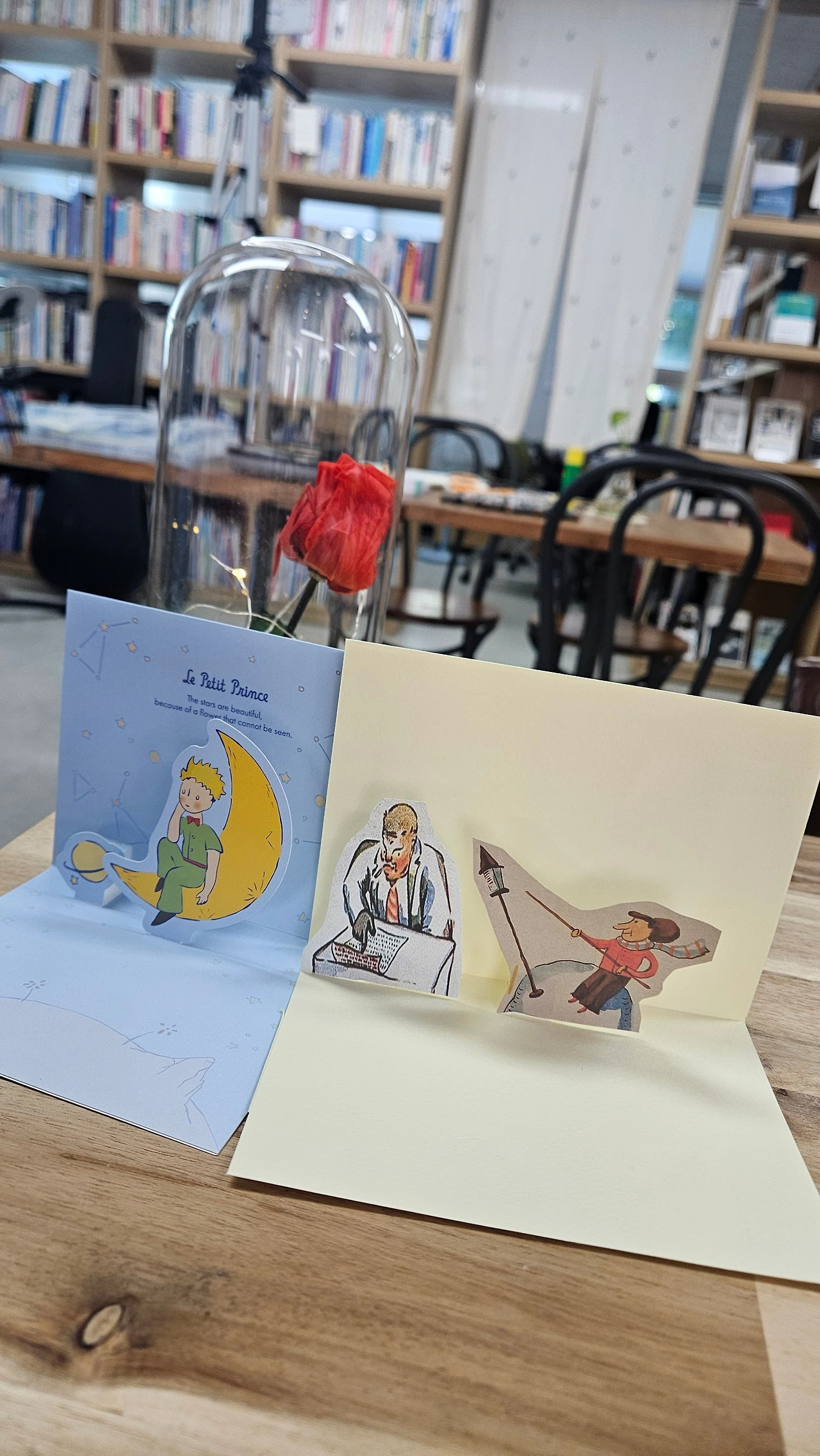 지리학자의 별에서는 자신은 학자이지 탐험가가 아니라며 별을 분석하고 기록하나 실상 별에 대해 아는 바가 없는 지리학자를 만단다. 그리고 지구의 사막 한가운데 떨어진다.