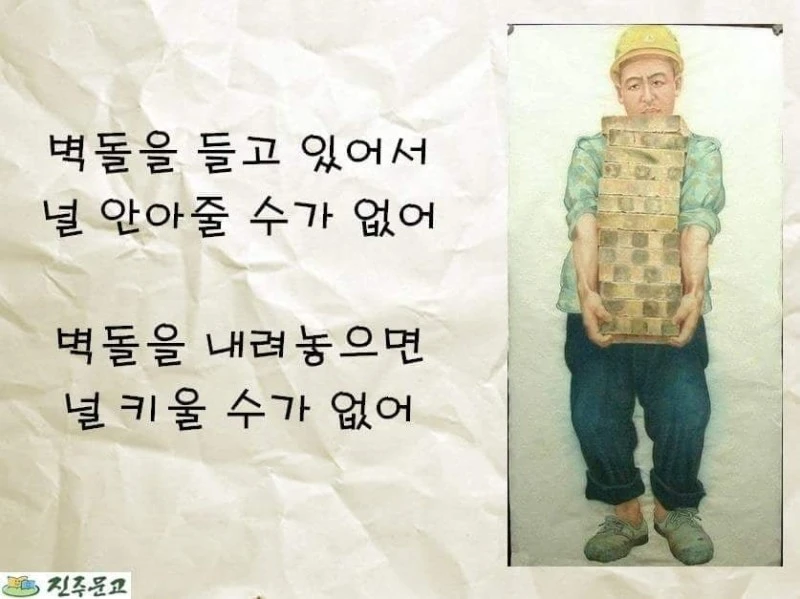 벽돌을 들고 있어서