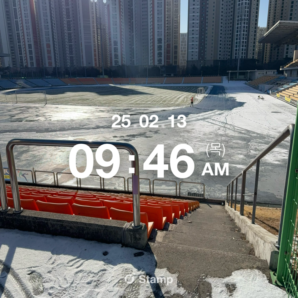 아침에 일어나 눈곱도 그대로 둔 채, 뛰기 위한 옷을 입고 뱅글뱅글 돌 수 있는 트랙이 있는 운동장으로 향했다. 트랙은 아직 눈을 덮고 있었고, 그 눈들은 새벽부터 달렸던 사람에게 짓밟혀있었다. 자잘한 무늬를 새긴듯한 눈은 둥글고 긴 운동장이 만드는 그림자의 끝을 따라서 손을 잡고 흩어지고 있었고, 해가 고개를 들기를 바스락거리는 소리로 기다리는 눈들은 성질 나빠 보이는 그림자와 함께 트랙을 돌며 만날 때마다 추운 입김을 불어댔다.