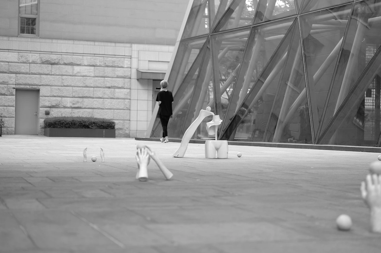 거리에 사람들의 손에서 떠나는 팜플렛에 새겨진 예술이란 글씨는 사람들의 웃음과 알지 못함과 알 것 같음과 알고자함의 노력사이의 줄다리기에 끊기고 늘려져서 인조 잔디 안에서 엉뚱한 꽃을 피웠어요. 그 꽃은 금세 다리를 벌려 꽃을 피우고 씨앗들을 뿌렸어요. 그 씨앗을 공연이 이루어지는 어느 현대식 건물 사이의 좁은 길을 따라 외로운 여자 한 명이 분해되어 있는 인체의 조각을 듬성듬성 배치하고 공연을 시작하려는 곳에 도착했어요. 여인은 그 누군가 찢어져 남아 있는 팜플렛조각을 보고 다행히 찾아와 준 몇 명 안 되는 사람들을 위해 장엄한 표정을 지으며, 내 모든 걸 보여주겠다는 각오로, 생애 최고로 예술의 가장 끝자락에 있던 기억을 더듬어 몸 구석구석까지 퍼뜨린 후, 울어버릴 것 같은 마음가짐을 강하게 품고, 몸을 움직이기 시작했어요