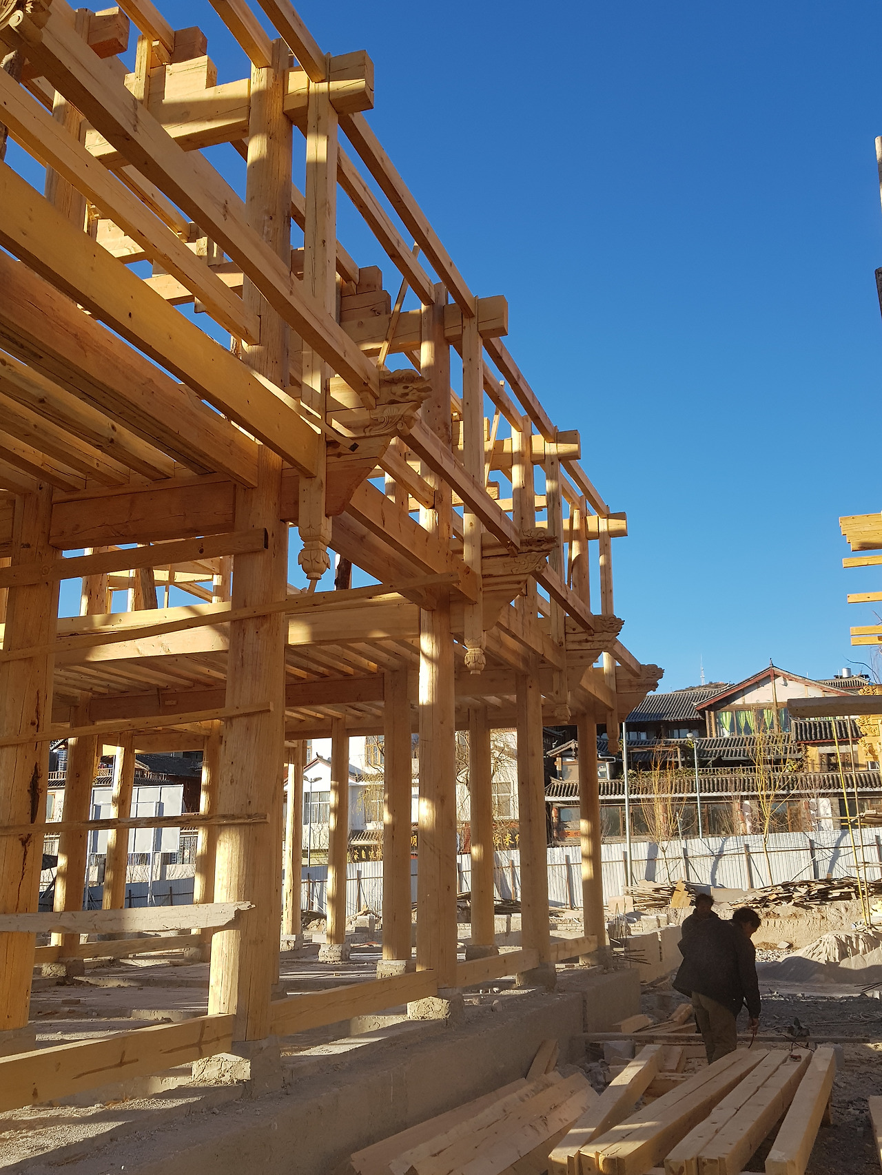 대륙의 중원 깊숙이 윈난성 여강과 (리짱)와 대리 (똬리)에는 지금도 #목조(중목구조)가 한창 시공되고 있었다