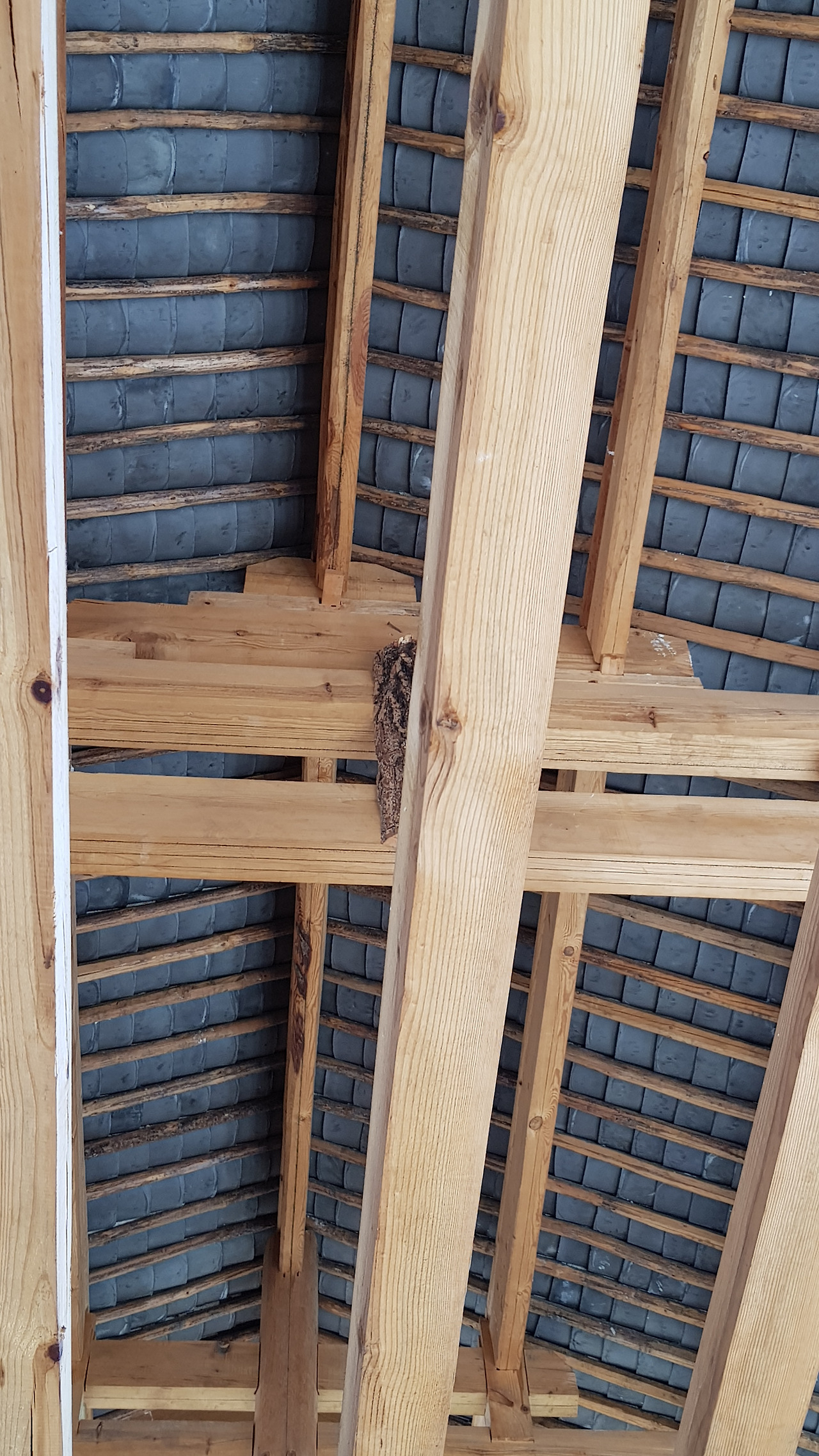 위의 지붕을 보면 지붕위에 기와는 일정한 서까래를 이용 바로 기왔장을 올렸다