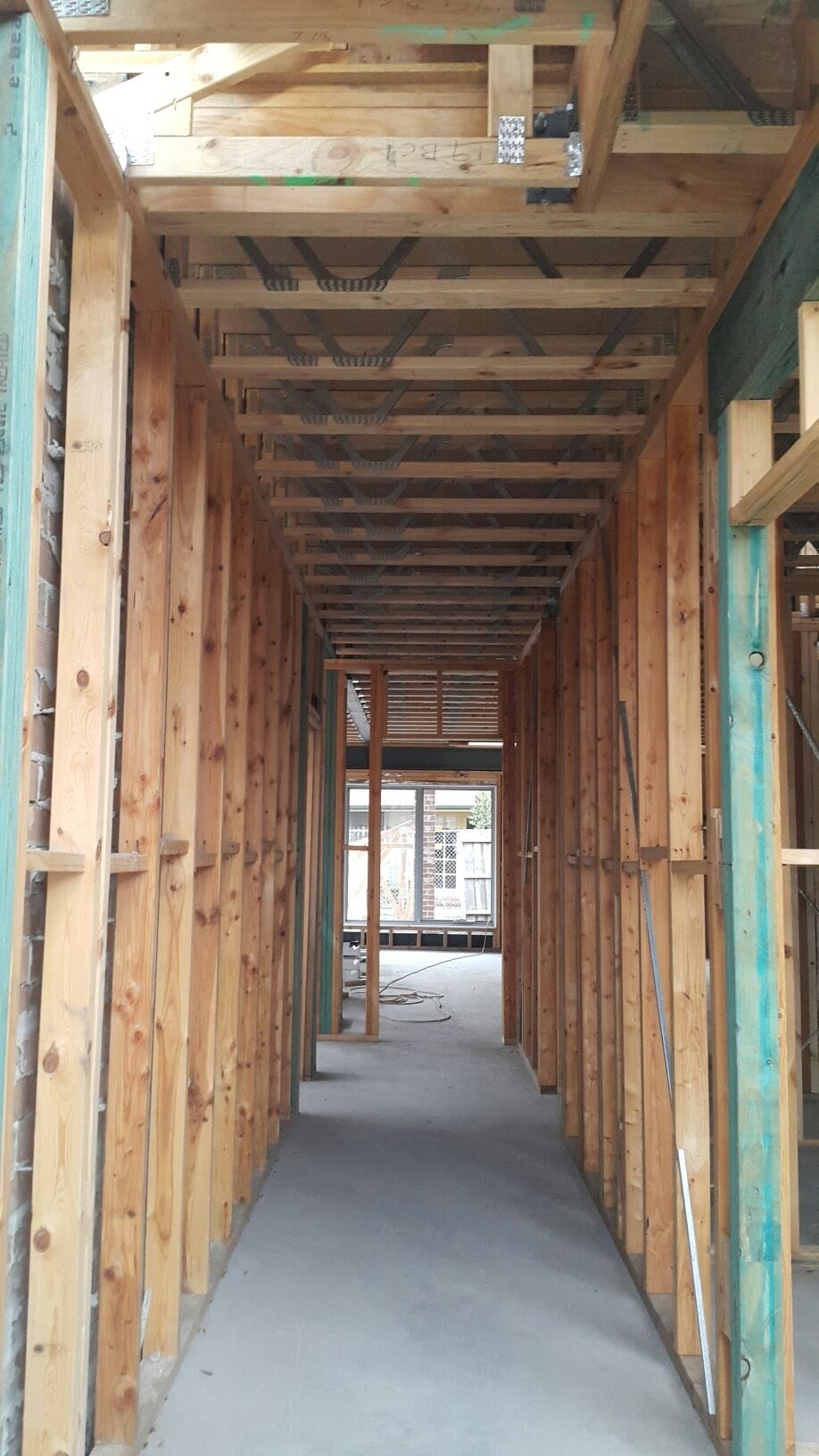 경량목조는 각재와 OSB 합판에 타이백으로 골조를 만든다음 외장 내장을 시공합니다.