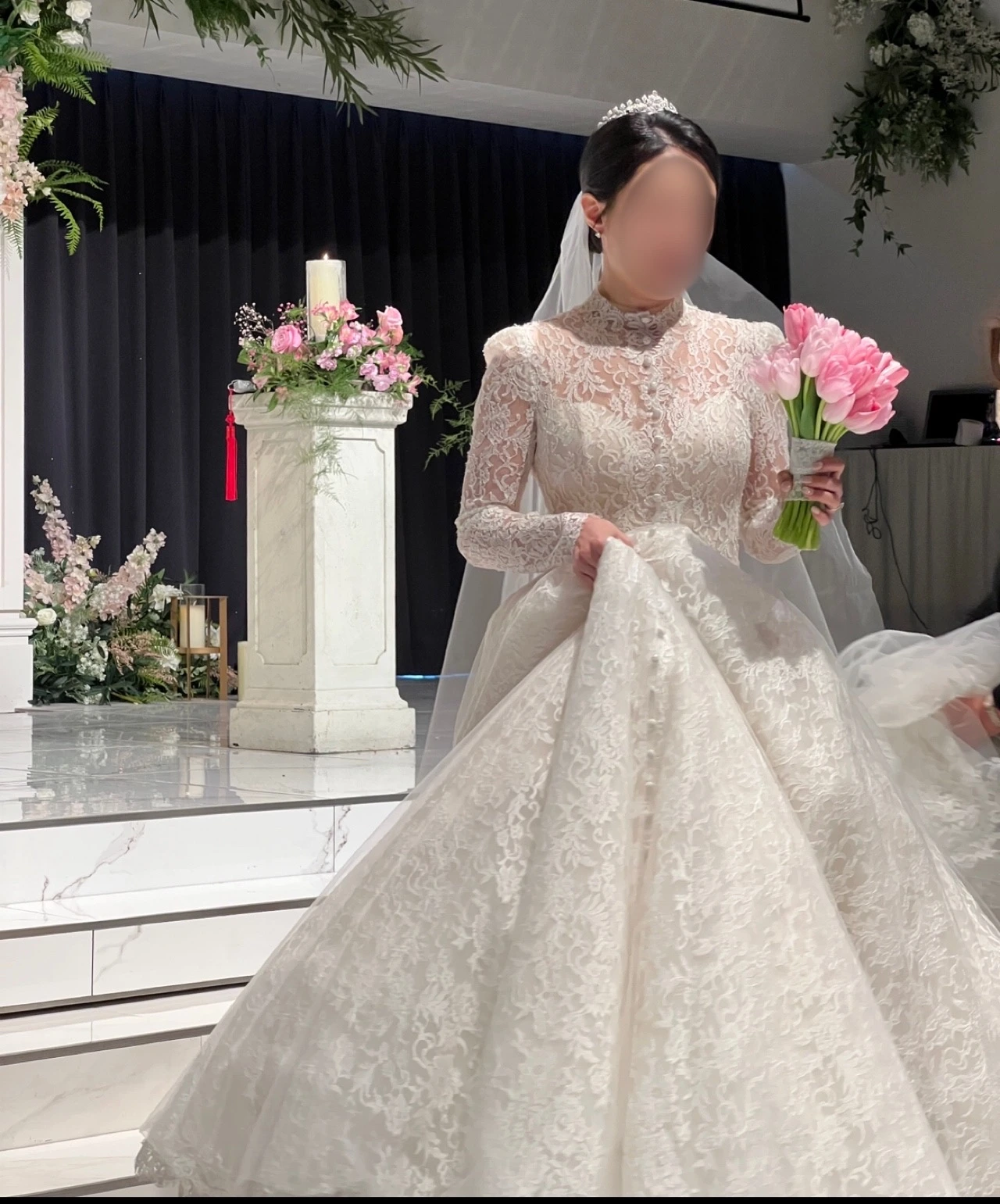 신상드레스를 다들 추구하는 데는 이유가 있다. 치마의 '풍성함'이 다르고, 사진으로 봐도 '새것'과 '낡음'의 티가 나버린다. 내가 고른 드레스는 신상이 아니었다.... 정말 예쁜 드레스였지만 사용감이 확연했고, 치마 레이스 무늬도 아쉬웠다(화려한 모티프를 좋아하는 내게는 레이스도 빡빡해야만 했는데 듬성듬성 있는 느낌이었다)