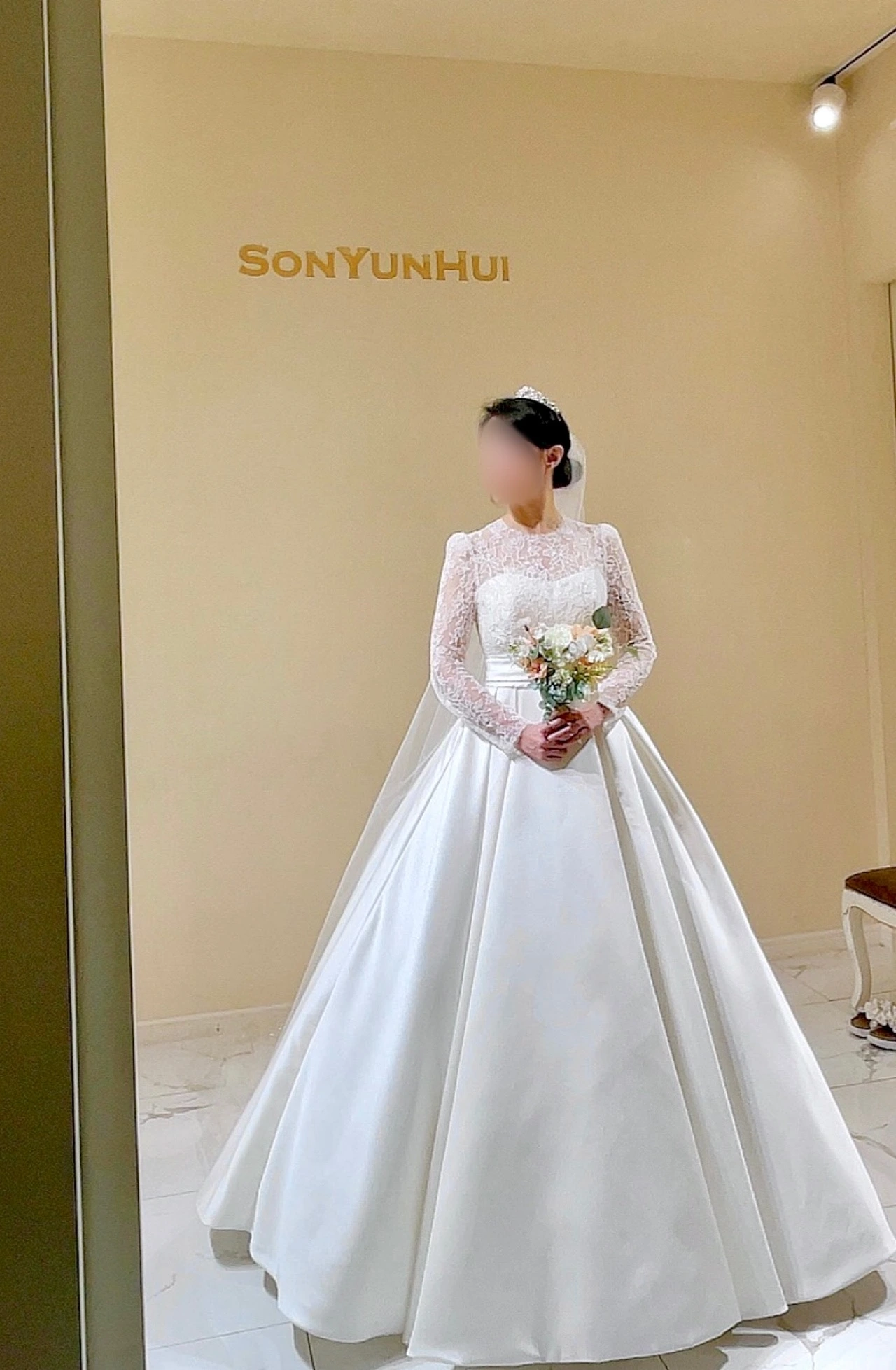 지난 6개월간 비즈 드레스만 파던 나는, 한 2주 동안 빠르게 레이스 드레스를 훑었다. 3개 정도 샵을 추려서 플래너님에게 예약을 여쭤봤고, 그중 한 곳(브라이드손윤희)을 예약하여 다시 또 휴가를 내고, 또 2시간짜리 셀프 화장을 하고, 또 청담으로 갔다. 확실히 그전 샵보다 65만 원 정도가 추가되는 샵이라 치마의 모티프나 레이스 원단 등의 차이가 있었고, 100% 맘에 들진 않았지만 더 이상의 선택지는 없다!라고 생각하고 현장계약을 했다. 지난 샵의 위약금은 다행히 이번 샵의 현장계약 할인으로 퉁칠 수 있어서 다행이었고.