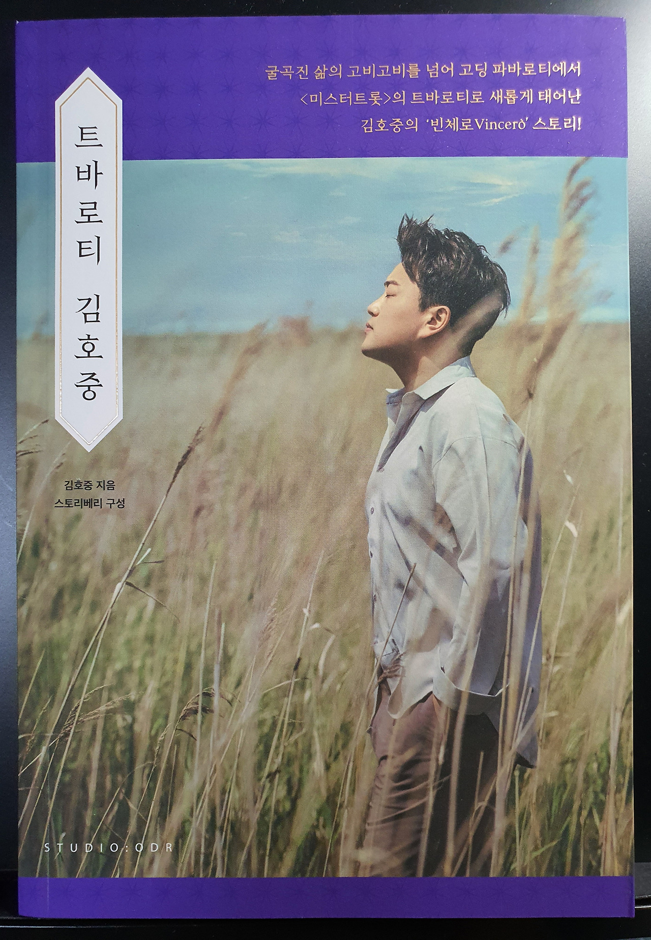 《트바로티 김호중》 표지 읽기 미스터 트롯 경연에 참가하여 최종 4위라는 성적에 오르며 강력한 팬덤을 구축한 김호중이 《트바로티 김호중》이라는 책을 펴냈습니다. 표지 사진은 주인공 김호중의 화이트와 브라운 상의와 하의, 블루와 브라운과 그린이 상중하로 형성된 갈대밭 배경, 그리고 사진 위아래로 배치되어 있는 임페리얼 퍼플로 디자인되어 보는 이의 감성에 호소하고 있습니다. 짙은 브라운 계열의 바지를 입은 김호중의 두 다리는 그린에 자리잡고 있으며, 얼굴과 머리는 흰 구름이 연하게 드리워 있는 옅은 블루 계열의 하늘에 그윽하게 젖어 있습니다. 이런 배경의 구성으로 인하여 김호중의 머릿속에는 하늘로 가득 차 있다는 이미지를 완성했습니다. 아래에서 위로 방향을 가리키며 뻗어 있는 갈대의 수직적 방향감이 김호중의 방향을 읽게 하면서, 앞에 있는 짙은 갈대의 사선은 김호중의 얼굴, 그중에서 특히 후각과 구성적으로 어울립니다. 김호중 뒤에 있는 갈대는 여러 개의 강력한 수직 그러나 부드러운 수직으로 김호중의 등과 뒷면을 단단하게 받쳐주고 있습니다. 키는 김호중의 머리보다 커서 김호중을 충분히 받쳐줄 수 있을 뿐만 아니라, 김호중의 얼굴 앞쪽 아래에 위치한 갈대의 방향이 김호중 얼굴을 가리키는데 이때 형성된 김호중의 풍성한 울림의 배경이 메아리 같은 역할을 해주고 있습니다. 표지를 만지는 그립감도 보통의 책과는 완전히 다릅니다. 보통의 책을 잡는 그립감은 손으로 책을 잡아야 하는 느낌이라면 김호중의 책은 손에 착 잡히는 그림갑을 지니고 있습니다. 마치 부드러운 가죽의 느낌과 비슷하다고 하면 될까요. 일반 책을 잡는 느낌이 손에서 벗어나려는 느낌, 또는 잡지 않으면 그대로 손에서 빠져나가버릴 것 같은 느낌의 그것이라고 한다면, 김호중의 책은 책이 손에 잡힌 느낌, 책이 손에서 빠져나가지 않겠다는 느낌의 그것이라고 하겠습니다. 표지의 질감도 독특합니다. 표지 두께는 보통의 표지와 똑같은 두께인데도 손으로 만지는 질감은 꽤나 두껍게 느껴지는 질감의 그것입니다. 손으로만 느끼는 질감으로 본다면 상당히 두꺼우면서 고급진 표지로 느껴지게 됩니다. 보통의 일반적인 표지들을 만져보는 터치감이 딱딱하고 차갑고 무감각하고 부정적 의미의 정적인 느낌이라면, 김호중의 표지가 주는 터치감은 부드럽고 따듯하고 감각적이며 긍적적 의미의 동적인 느낌이라고 하겠습니다. #김호중#트바로티김호중#미스터트롯#미스터트롯김호중#고딩파바로티