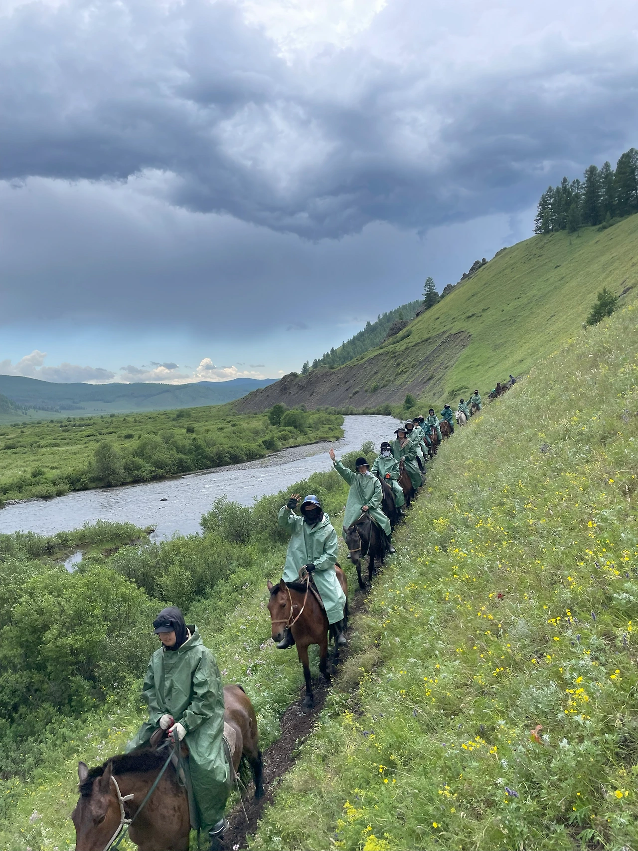 나는 지금까지 여러 번의 투어 중 사고가 없었다는 사실을 스스로 상기시키며 너무 겁내지 말자고 자신을 다독였다. 우비를 옷 위에 걸치고 난 후, 나는 다시 페라리의 등을 빌리기로 했다. 다만, 여전히 겁에 질린 상태의 나는 도저히 절벽길을 계속 가기가 힘들었다. 무엇보다 손이 계속해서 떨렸기 때문에 고삐를 제대로 쥘 수 있을지 의문이 들었다. 다행히 이런 내 상태를 눈치챈 이번 여행의 책임자이자 몽골인 가이드인 '바가'가 나를 대신해 고삐를 쥐며 우선 자기가 말을 몰겠다고 했다. 배신감이 떠오를 정도로 페라리는 바가의 손아귀에서는 그렇게 얌전할 수가 없었다. (결국 2종 보통인 내가 문제인거지 뭐..)