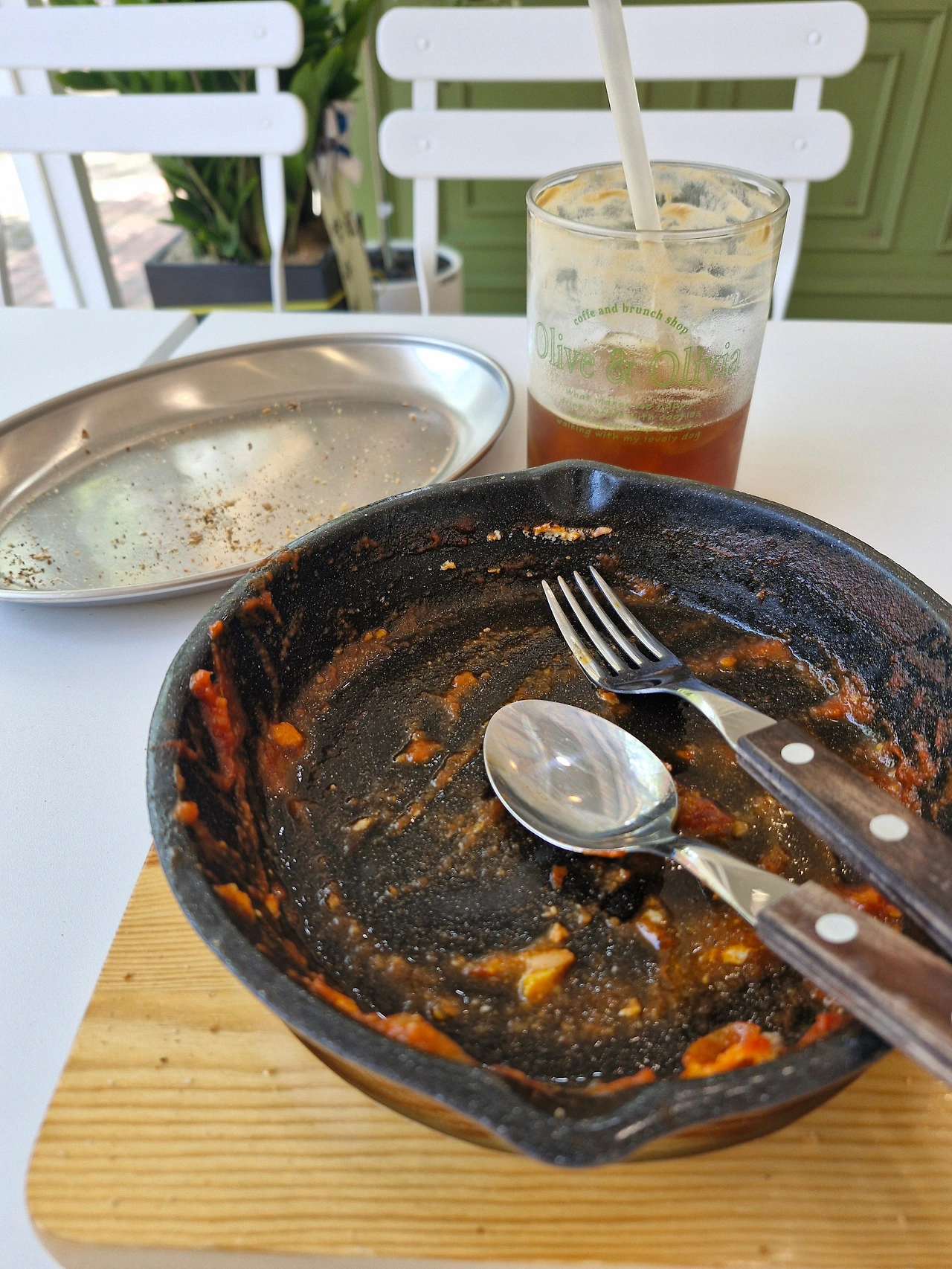 물론 아쉬운 점도 있긴 했는데, 빵의 굽기는 딱 좋았지만 빵 자체의 맛이 평범했고 요리와 잘 어우러지는 맛은 아니라 따로 먹는 것을 택했다. 무엇보다 아쉬웠던 건 소시지였는데, 개인차가 있겠지만 가공육의 맛을 즐기는 편이 아니라서 토마토와 양파 같은 자연스러운 맛 사이에 인공적인 맛이 섞인 게 아쉬웠다. 그럼에도 전반적인 맛 (커피 포함), 인테리어, 플레이팅까지 만족스러워서 조만간 가지 라쟈나를 도전하러 재방문을 하게 될 것 같다.