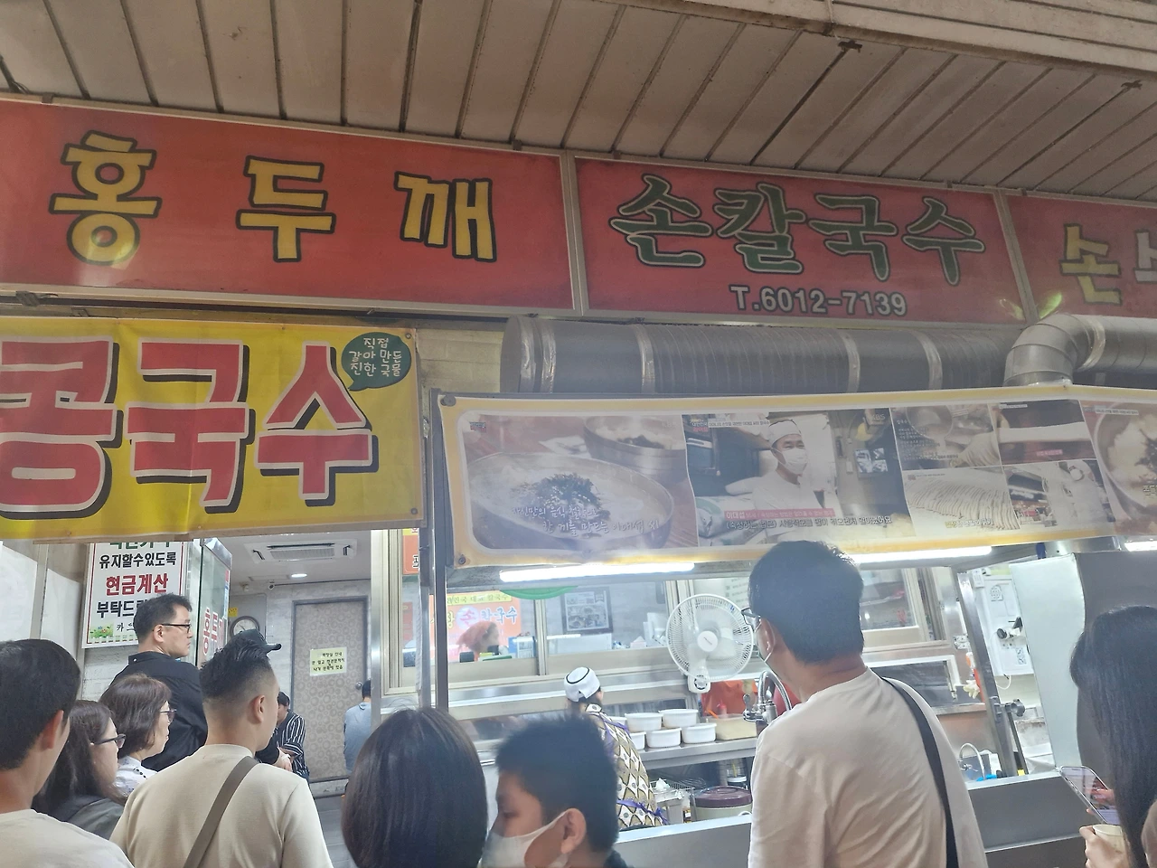 망원시장은 마포구에 있는 전통시장으로, 70년대에 점포들이 생기기 시작하면서 형성되었다고 한다. 그러니까 생각보다 역사가 오래된 것은 아니라는 건데, 그럼에도 서울에서는 데이트코스로, 나들이코스로도 잘 알려져 있는 곳 중 하나다. 물론 근처에 살고 있는 친구에겐 관광지보다는 동네 시장의 느낌이 강한 것 같았지만 말이다. 이유는 알 수 없지만 우리 동네에 있는 시장도 그렇고, 시장하면 칼국수집이 유명한 경우가 많은 것 같다. 망원시장의 대표적인 맛집도 칼국수집인데, 원래 콩국수를 먹으려고 온 거였는데 결국 그 명성을 직접 경험해 보고자 칼국수를 주문하기로 했다.