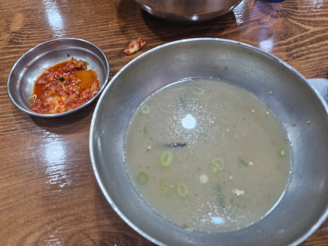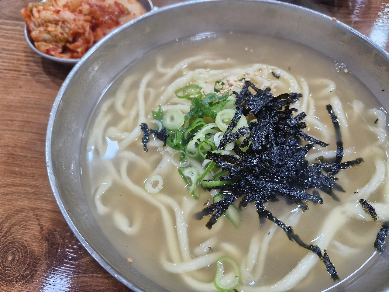 메뉴는 매우 소박하다. 잘 담근 김치와 칼국수, 그리고 그 위에 올라간 김과 파 고명이 전부다. 단순한 조합이지만 확실히 맛집이라는 이름이 부끄럽지 않을 정도로 맛있었다. 칼국수는 조선시대에서도 그 기록을 찾아볼 수 있는 나름 역사가 깊은 요리인데 조선시대에서 가장 오래된 요리책, 규곤시의방에서 '절면'이라는 이름의 면요리가 등장한다고 한다. 물론 칼로 썰어 면을 만들어낸다는 점에서는 칼국수와 유사하지만, 메밀을 사용하기도 하고, 면을 따로 끓인 후 찬물에 씻어 조리하는 방식이 면을 바로 육수에 넣는 지금의 칼국수와 차이가 있다고 한다.