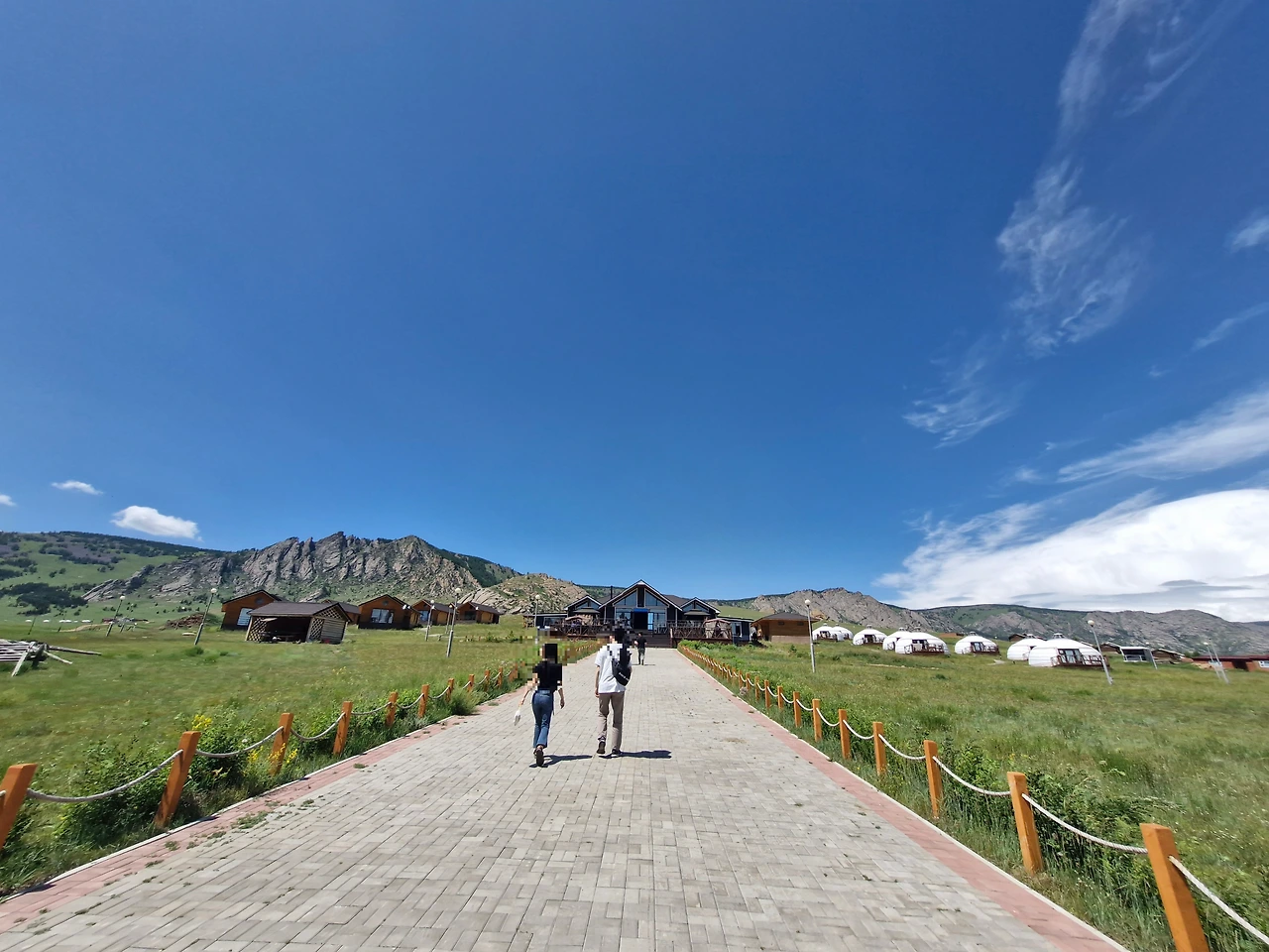 다시 한참을 달리다 보니 드디어 우리의 베이스캠프가 눈에 들어왔다. 우리의 베이스캠프는 초원 중앙에 위치했는데, 잘 다듬어진 길 끝에 식당이 있었고, 이를 기준으로 한쪽에는 게르식 숙소와 원목으로 된 숙소가 나뉘어진 꽤나 고급스러운 숙소였다. 몽골여행을 준비하면서 여러 게르식 숙소에 대한 후기를 확인했는데, 여긴 그 중에서 호텔로 치면 5성급이지 않을까 싶을 정도로 시설이 좋았다.