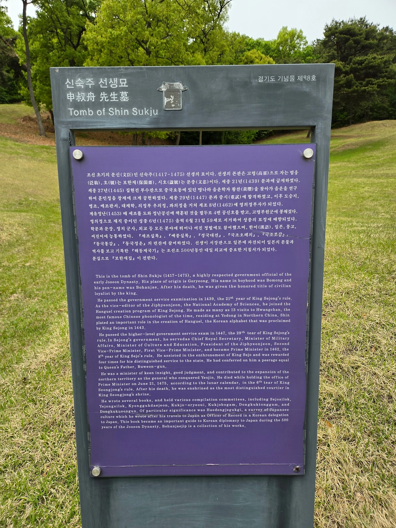 의정부 고산 소재 신숙주 선생묘