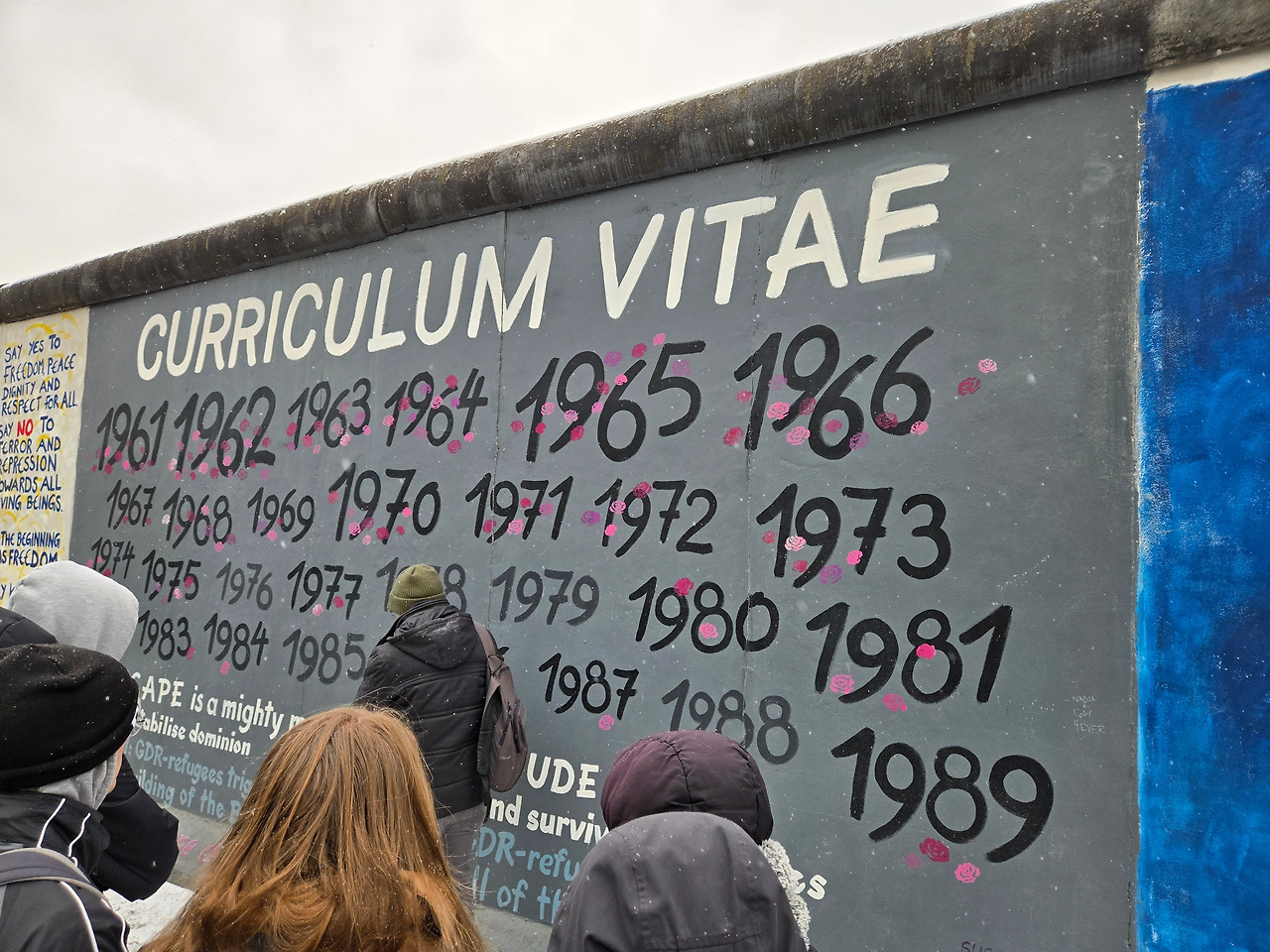 베를린 장벽이 건설되는 건 제가 태어나기 전의 일이라 실시간으로 보진 못했지만, 어릴 적 베를린 장벽이 무너지며 베를린 사람들이 환호하며 뛰어다니는 장면을 동시대 TV 방송으로 본 기억이 남아있습니다.