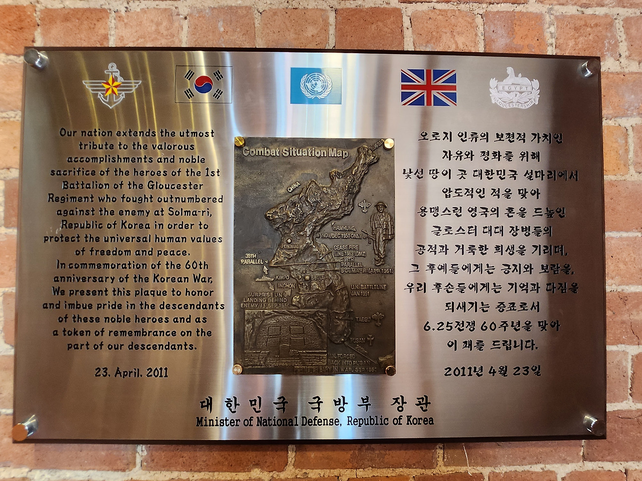 6.25전쟁 참전 감사패 at 글로스터 군인 박물관