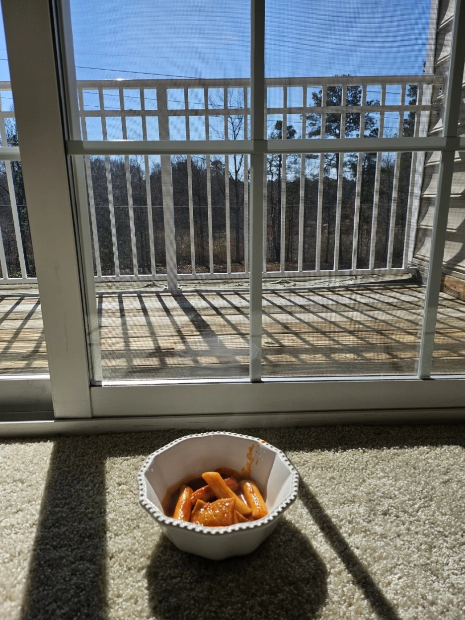 미국에서의 첫 떡볶이를 눈앞에 두니 감개가 무량했다. 창 밖으로 푸른 하늘이 보이니 어쩐지 사진을 찍고 싶어졌다. 그래, 정착 과정이 아직 안 끝났지만 여기서 잠시 좀 쉬어가자. 운전면허증 좀 늦게 받으면 어떻고, 학교 좀 늦게 보내면 어때. 결국 어떻게든 되겠지. 너무 애쓰지 말고 순간순간 즐기며 살자구.