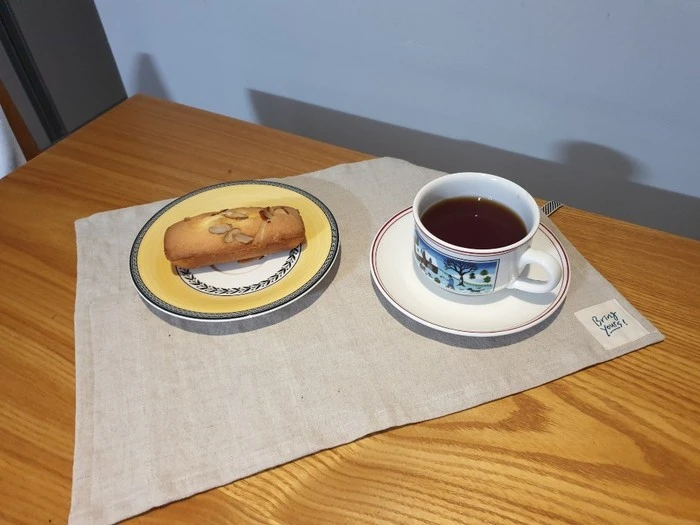 테이블 위에 커피 도구들을 차려놓는다. 이렇게 하면 의식에 보다 집중할 수 있다. 한켠에는 테이블 매트도 깔아 두었다. 후배의 텀블벅 행사 때 구입해 준 것인데 사놓고 도통 사용하지를 않아 후회하던 참이었다. 이게 여행에서는 이렇게 쓰이네.
