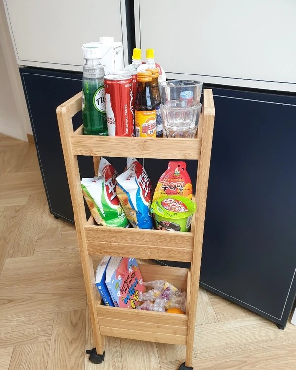 몇 년 전 남편과 긴 투쟁 끝에 결국 TV를 없앴는데, 코로나 시국에서 견디지 못하고 다시 들였다. 그것도 무려 75인치로다가. 막상 들이고 보니 남편보다 내가 더 많이 사용한다. ^^ 영화나 드라마 몰아보기를 하면서 즐거움을 배가시키는 것이 간식 수레. 마치 기내식 서빙하는 느낌으로다 사용하고 있다.