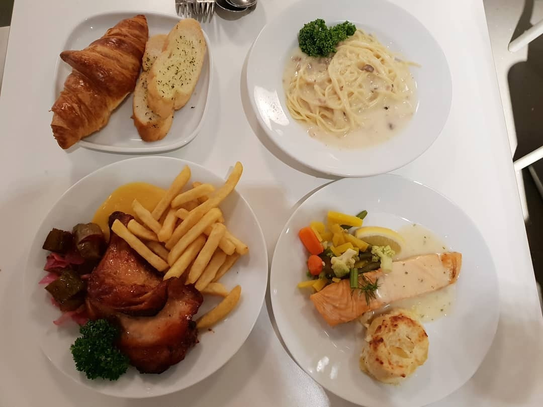 남편에게 주문을 맡기고 아이와 자리를 잡고 앉았는데, 남편이 저 멀리서 거대한 카트를 끌고 오는 것을 보고 아뿔싸! 무릎을 쳤다. 내가 주문을 하러 갔어야 하는데. 음식을 남기는 데 죄책감이 1도 없는 남편이 이것도 싸네, 저것도 싸네 하면서 신이 나서 잔뜩 담아온 것이었다.