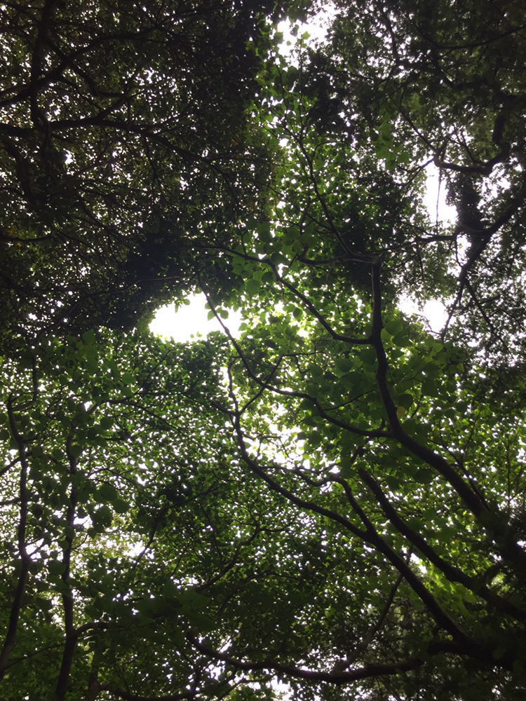 바람소리, 거리를 알 수 없이 우는 새소리. 풀벌레 소리. 이내 숲의 신성함이 온몸을 감싸기 시작한다.