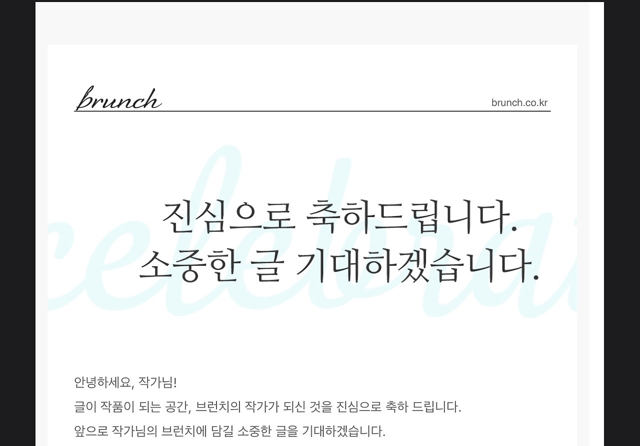 이틀 뒤 합격 이메일을 받았다. 기뻤다. 한편으로 두렵기도 했다. 내가 다른 사람의 시선을 신경 쓰지 않고 오로지 내 이야기를 써낼 수 있을까? 자물쇠 달린 일기장에서 벗어나 불특정 다수가 볼 수 있는 플랫폼에 글을 쓴다는 것은 꽤 용기가 필요한 일이다.