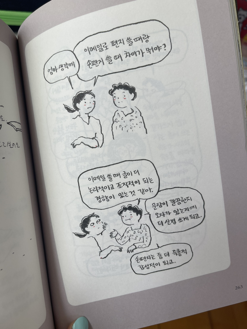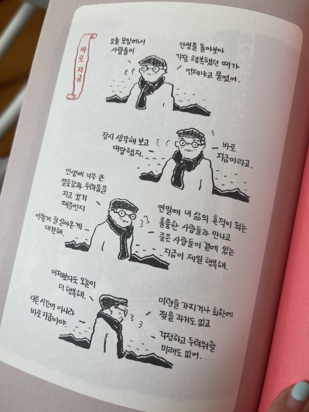 책에서 핵심을 잘 뽑아 내용에 매력을 더하는 게 바로 그림이다. 연필로 쓱쓱 그려낸 그림 같은데 어떻게 이렇게 좋은 걸까. 나도 이런 일상의 순간을, 책의 핵심을, 내가 사랑하는 이들을 이렇게 그려내 기록으로 남길 수 있다면 더할 나위 없이 행복할 것만 같다.