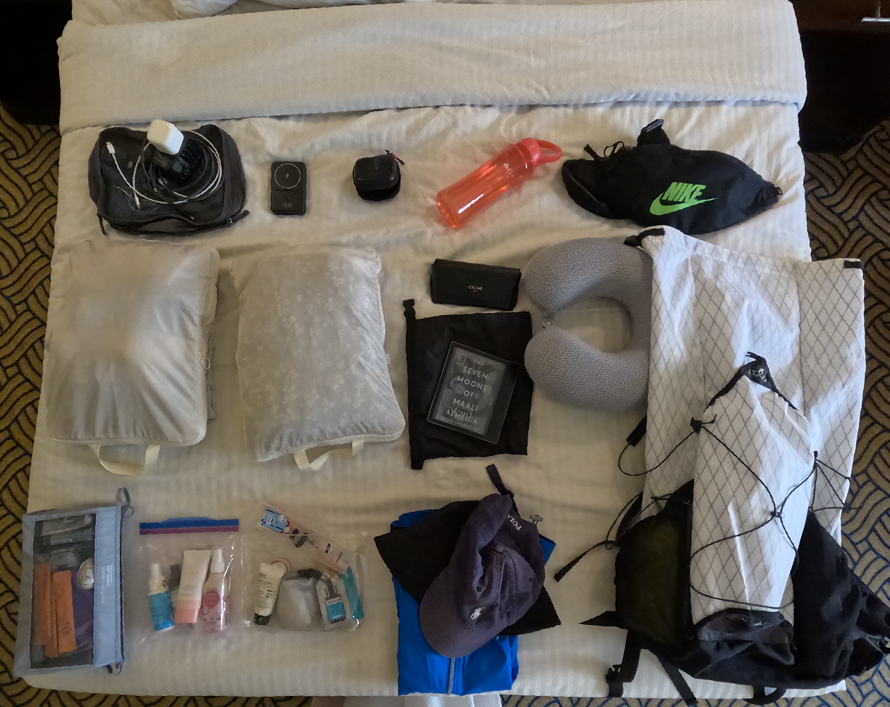 어제 늦게 도착한 데 비해 아침에 생각보다 일찍 깼다. 어제 빨아둔 양말이 다행히 잘 말랐다. 미니멀리스트가 된다는 건 부지런해져야 한다는 걸 의미한다. 속옷도, 양말도, 티셔츠나 바지도 잘 빨아서 입어야 한다는 것. 가지고 온 물건을 모두 꺼내보았다. 내가 앞으로 8일간 짊어지고 다닐 나의 모든 것.