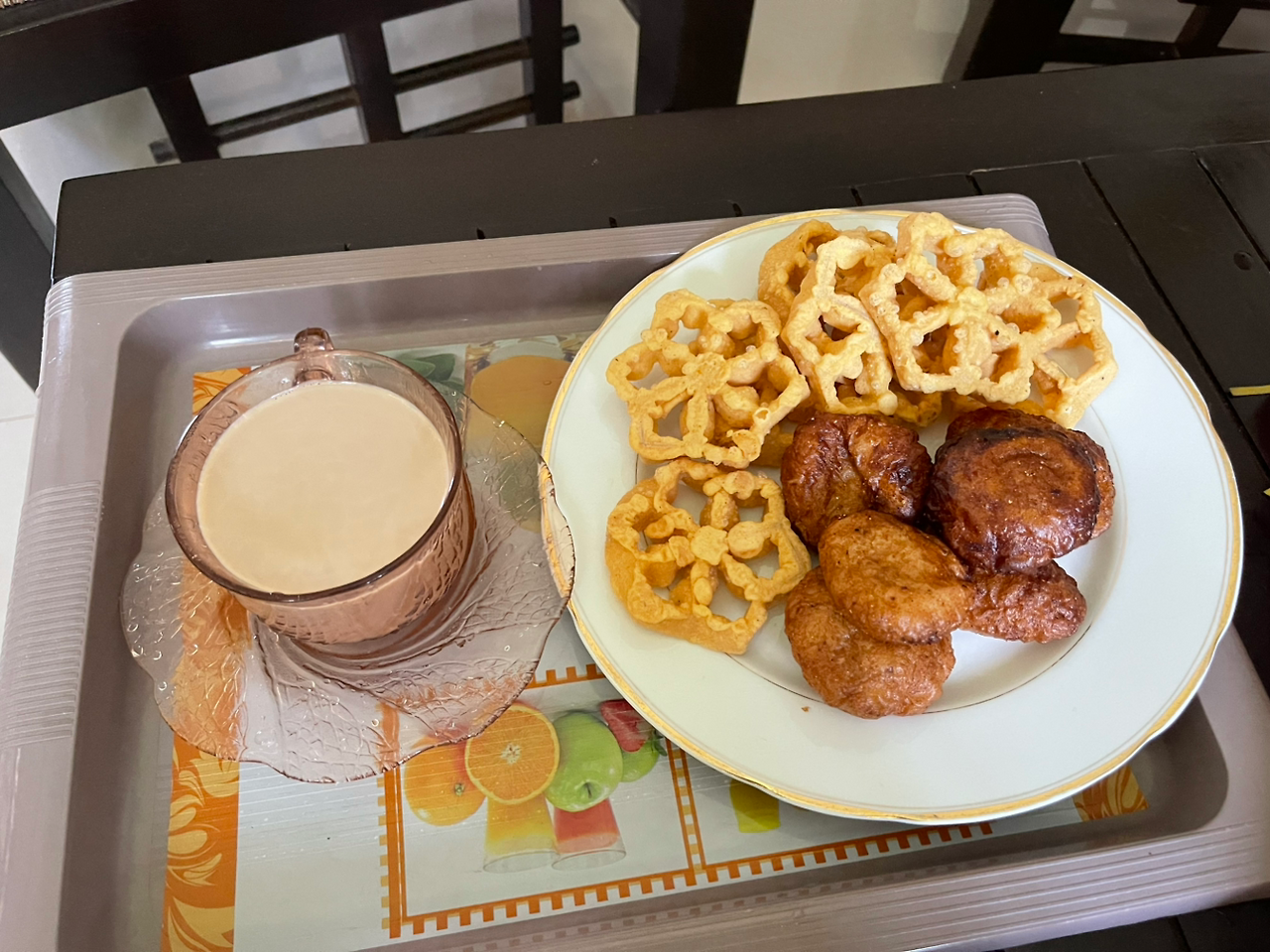 집은 마치 빠니보틀 영상에 나왔던 에랑카형님 집(보다 조금 더 좋은) 같았다. 거실에는 티비에서 오래된 미국 드라마가 나오고 있었다. 밝고 넓은 거실 한쪽 소파에 앉으라고 했다. 듀란의 누나도 나와서 인사를 했다. 아마 명절이라 다 모여있었나 보다. 커피와 차 중에 뭘 마시고 싶냐고 묻더니 밀크커피를 내어주셨다. 그리고 명절에 먹는 비스킷과 디저트를 같이 내어주셨다.