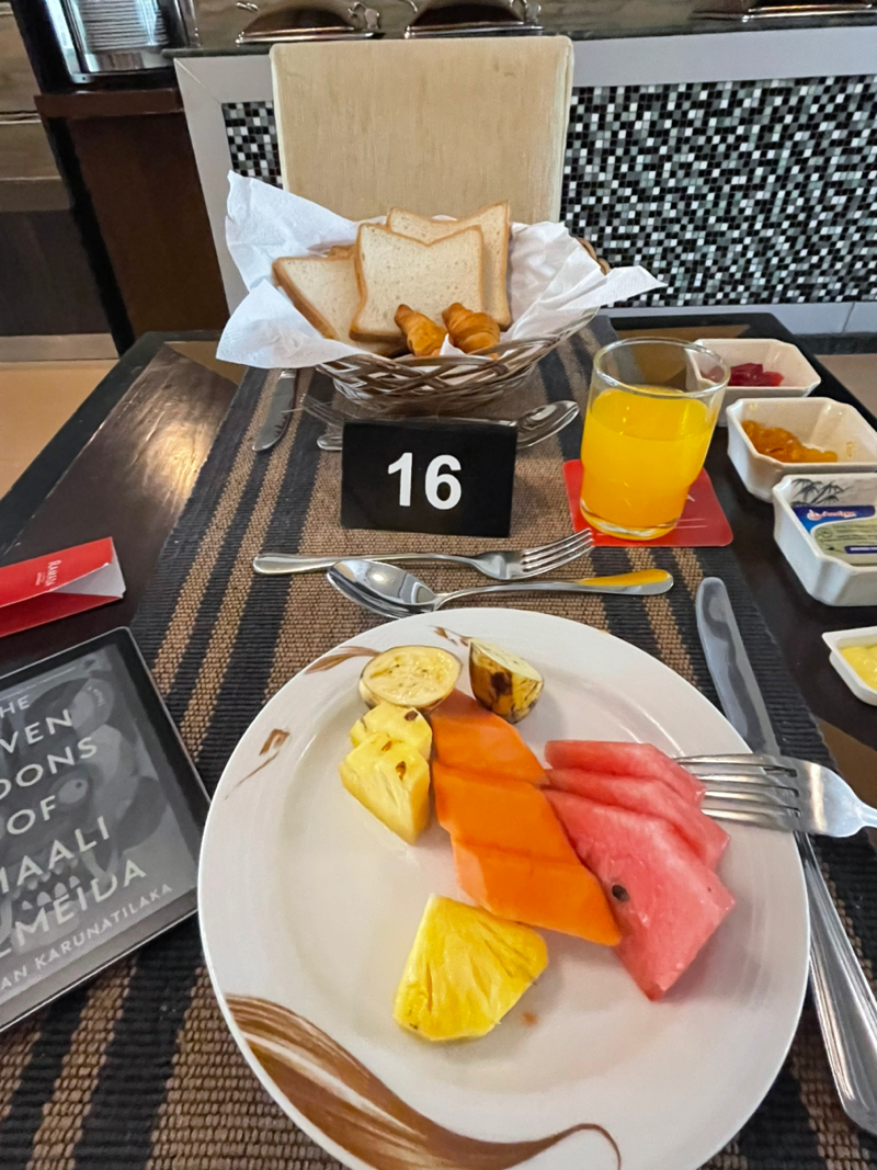 짧게 묵은 호텔이지만 조식이 포함이라고 해서 내려갔다. 9시가 조금 넘은 시간이었는데 식당에는 직원들 이외에는 아무도 없었다. 식당에 있던 직원들이 밝게 웃으며 맞아줬다. 아직 만난 사람이 많지 않지만, 스리랑카 사람들은 눈이 마주치면 모두 밝게 웃어준다. 사람이 없어서 그런지 조식은 뷔페가 아니라 스리랑카식/서양식을 선택하면 테이블로 다 가져다주는 형식이었다. 스리랑카 음식은 메운 편이라고 들어 아침에는 마음의 준비가 되지 않았다. 서양식을 선택했다.