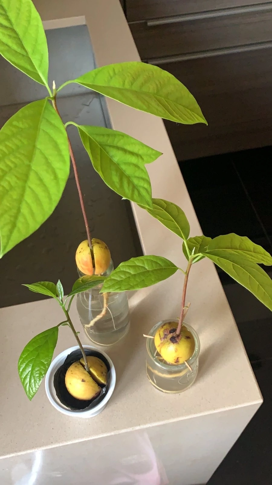 우선 겉껍질이 벗겨진 씨앗을 젖은 키친타월로 감싸 지퍼백에 넣는다. 땅 속에 있는 것처럼 촉촉한 환경을 좋아한다고 했다. 그리고 따뜻한 곳에 두라고 했다. 전 세계 아보카도의 1/3이 멕시코에서 오는 것을 생각해보면 당연한 말이다. 마침 홍콩의 기온이 뚝 떨어져(봐야 15도 전후였지만) 혹시 아보카도가 싹을 틔우지 않을까 봐 걱정했다. 지퍼백을 햇볕이 잘 드는 곳에 두었다가, 밤이 되면 창틀보다 조금 따뜻한 곳을 찾아 옮겨 주었다. 며칠에 한 번은 키친타월을 바꿔 주었다. 며칠 지나지 않아 아보카도 씨앗이 갈라지기 시작한 것을 보았다. 그 속에서 더 작은 씨앗 모양의 무엇인가가 보였다. 일주일 정도 지난 후, 아기 첫니가 나듯 하얀 뿌리가 빼꼼하고 나온 것을 보았다. 이렇게 빨리 나오다니!