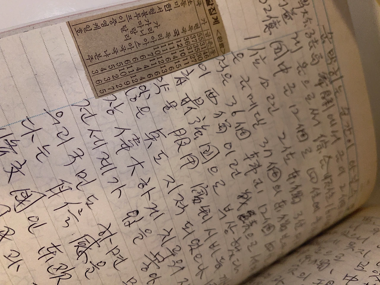 글이 번진 곳도 있고 읽기 힘든 한자나 한글도 있다. 하지만 문맥 상이나 앞에서 밝혀둔 할아버지의 서체로 내용을 조금씩 맞춰가고 있다. 어떤 부분은 정말 그 시대에 있던 큰 뉴스를 담아두셨다. 88 올림픽이 끝나고 신문에서 메달 수를 집계한 부분을 오려 붙여두기도 하셨고, 가족모임의 기록도 있었다. 그중 찾은 내 이야기.