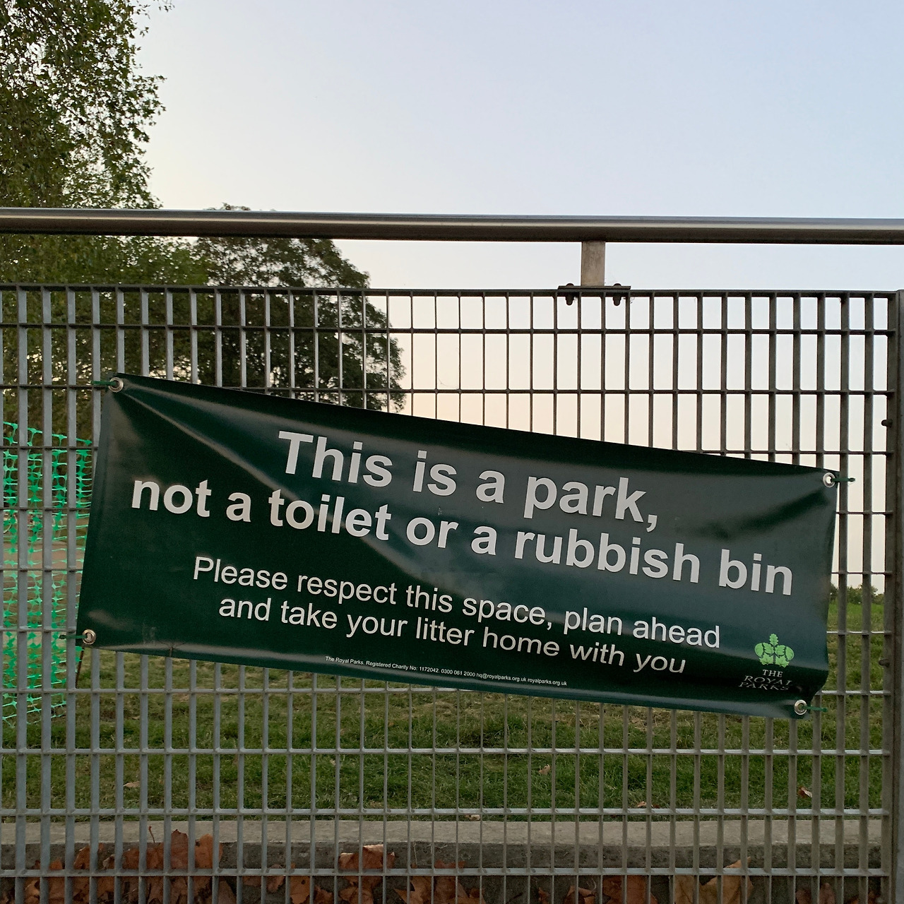 궁금해하던 찰나 어디론가 급하게 뛰어갔다 나올 때는 발걸음이 가벼운 사람들 여럿 보고 답을 찾았다. 특별한 게 없는 우리가 생각하는 딱 그것. 그러니 집 앞 공원 앞에 ‘여긴 공원이지 화장실이 아니에요(This is a park, not a toilet)’라고 우회적으로 쓰여있지. 직접적이고 구체적으로 말한다면 ‘제발, 똥 싸지 마세요. 실수하면 치워주세요.’라고. (당시 런던을 산책하다 보면 강아지똥만큼 인변을 자주 보았고, 치우는 사람들을 생각하니 너무하다 싶었다.)