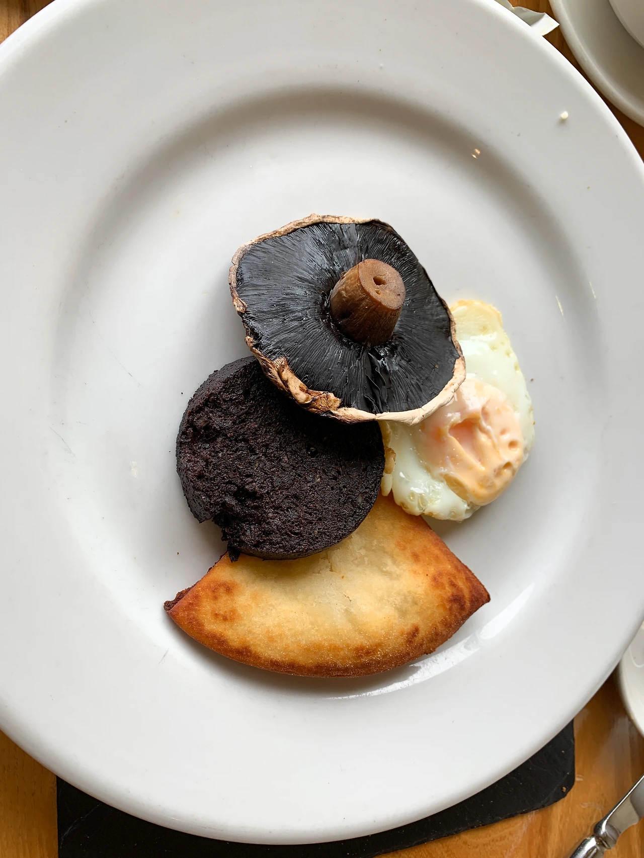 우리가 흔히 ‘잉글리시 블랙퍼스트’라고 불리는 영국식 아침메뉴에는 다음과 같은 것이 포함된다. 스크램블 에그 또는 계란 프라이, 소시지, 블랙 푸딩(선지 소시지), 해시브라운, 베이크드 빈즈, 토마토, 버섯.