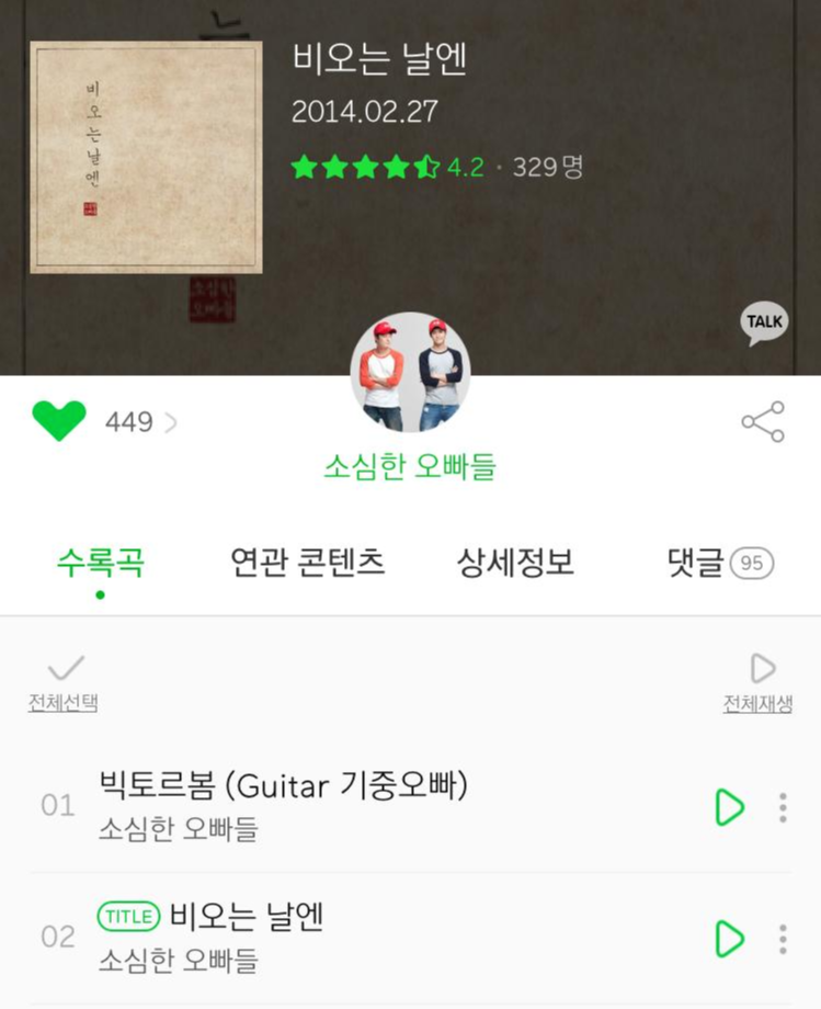 인디밴드를 워낙 좋아하고, 특히나 정오의희망곡 라디오를 진행하면서 인연을 맺은 뮤지션들을 개인적으로 애정하기에 주변 지인들에게도 적극 권장한다. 비오는 날 결코 센치해지는 기분 따윈 허락할 수 없다면 소심한 오빠들의 <비오는날 엔>을 꼭 들어보시라. 아마 당신은 오늘 저녁이든, 다음 번에 비가 내리는 날에든 꼭 부침개를 부쳐먹게 될 것이니! 데뷔초부터 워낙 유머 재치 넘치는 분들이라 소심하게 소심한 오빠들의 팬을 자처했다. (최근엔 리더였던 승호 씨 따로 '포레스코 Fore_sko'로 솔로 활동 중).