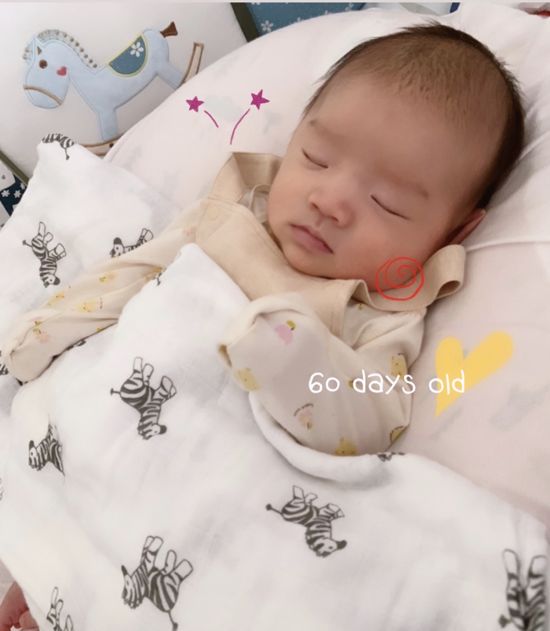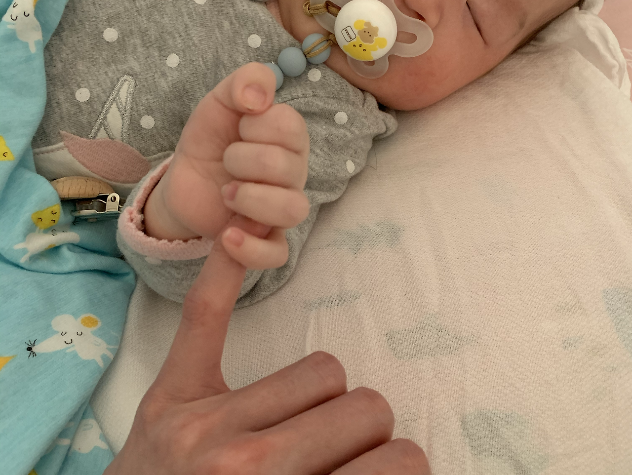 어디가 불편한 건가 살피려고 몸을 마사지하듯이 고루고루 만져주다가, 실수로 아기 손싸개 한쪽이 벗겨졌다. 손톱의 날카로운 면이 아기의 연한 살을 할퀼까 봐 내내 꽁꽁 싸매두기만 했던 아기의 작은 손. 그 순간 내 오른손과 아기의 왼손이 슬쩍 맞닿았다. 내손등 반절보다도 더 작은 크기의 아기 손, 관절 하나하나마다 있는 힘껏 힘을 주더니 내 살갗을 꼬집듯이 끌어당긴다. 손아귀에 내 손가락 하나가 잡히니 '이때다' 싶었는지 입을 배시시 씰룩거리며 돌연 내 손을 간질간질 매만지기 시작. 이거 실화야? 생후 두 달 차, 아들이 내 손을 잡았다.