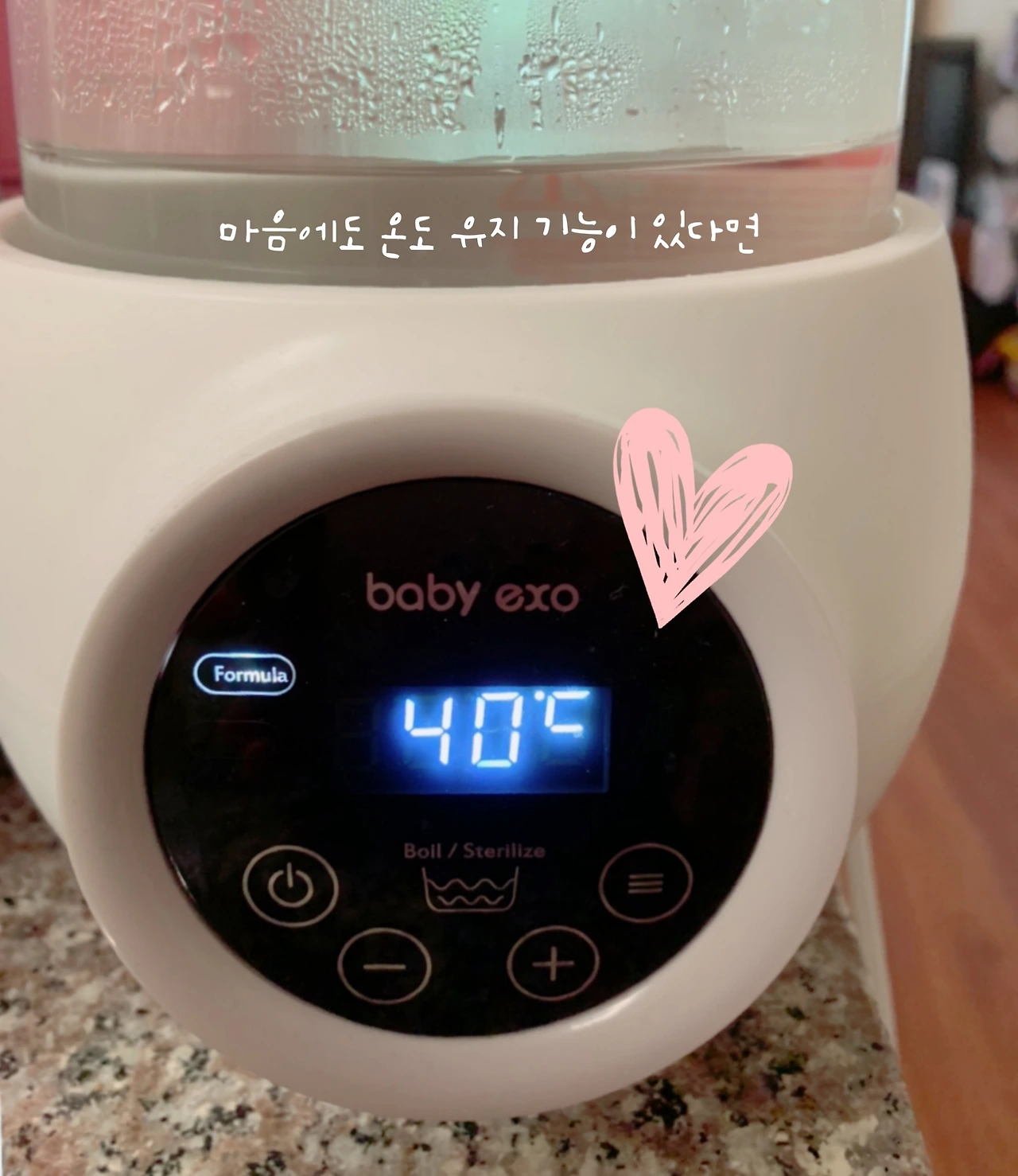 분유 포트, 육아를 하면서 결코 없어서는 안 될 필수템 중에 하나를 꼽으라면 단연 이걸 꼽겠다. 아기가 먹을 분유가 적당한 물의 온도에 녹아 섞일 수 있도록 온도를 맞춰주는 똑똑한 아이템. 분유 Formula 버튼을 눌러주면 물이 한번 팔팔 끓어올랐다가 이내 적당한 40도의 온도로 맞춰진다. 아기가 태어났을 4월 무렵이나 한여름을 달리고 있는 요즘 같은 때나 바깥 날씨 온도가 몇 도를 찍든 이 포트 안의 물은 늘 같은 온도를 유지하고 있는 거다. 스타벅스 커피도 식어버리고 나면 그 홀짝이는 맛이 영 아닐 때가 있는데 언제나 적당한 따뜻함을 유지하고 있으니 그 '항상성'이 갑이다. 이랬다가 저랬다가 왔다 갔다 하지 않으니 믿고 먹일 수 있다. 늘 언제나 어제와 같이 오늘도, 내일도, 딱 40도의 온도로.