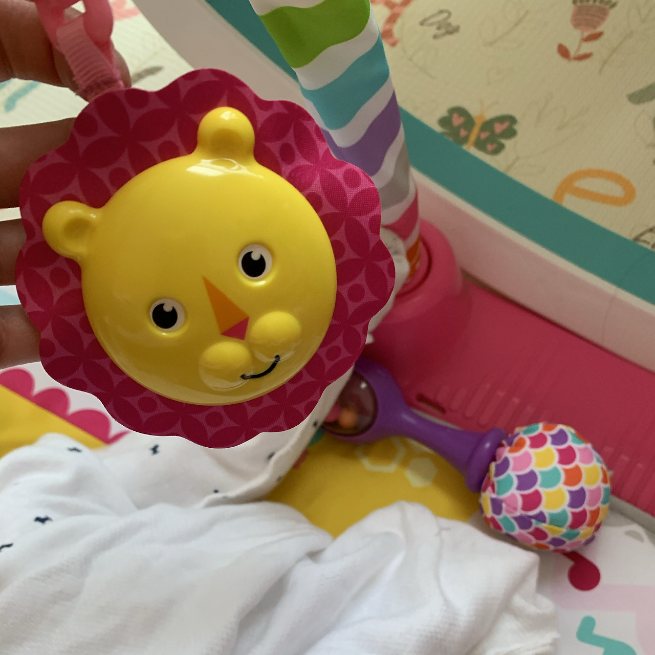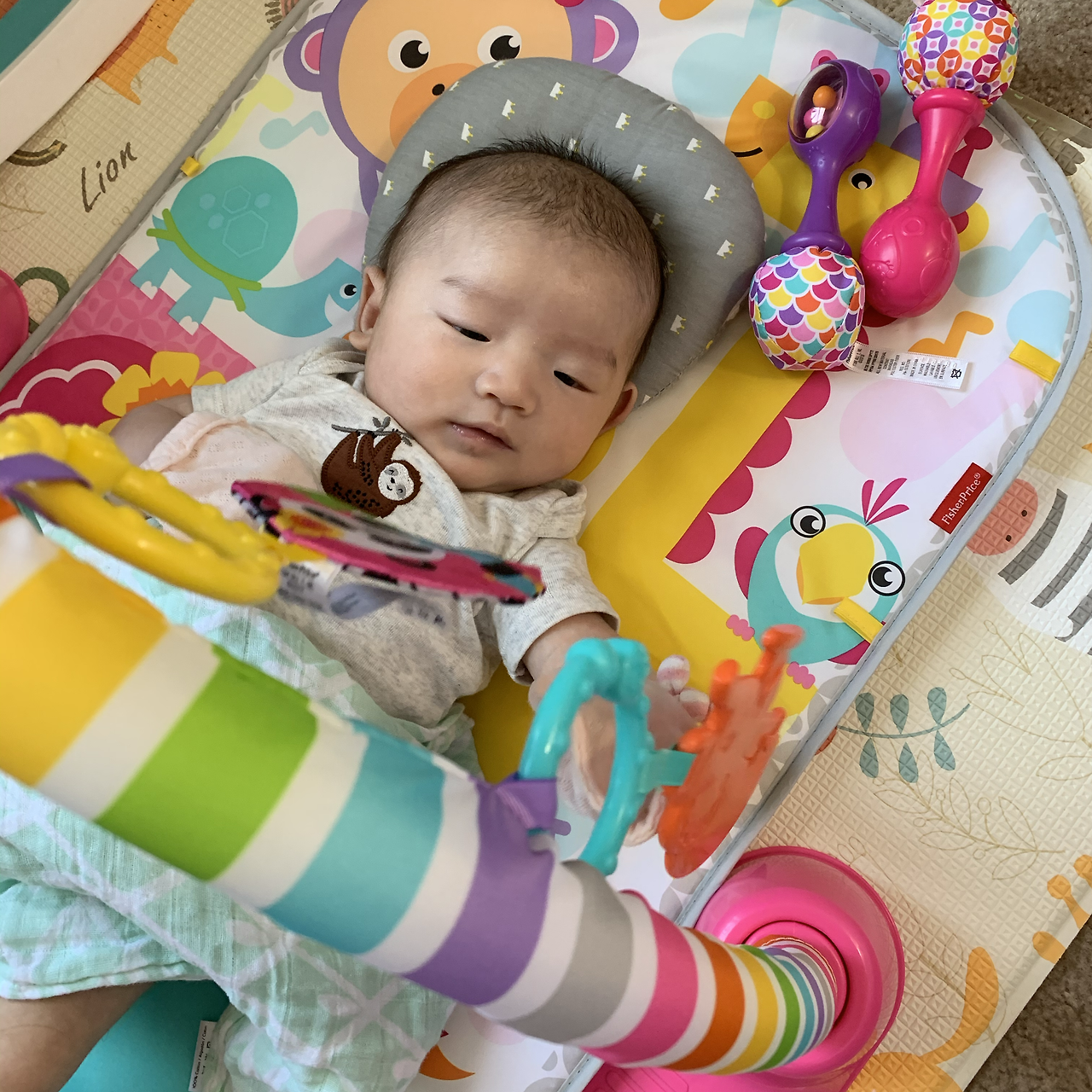 요 며칠 가만히 나의 상호작용을 돌아보다 보니, 나는 이렇게 한 마디씩 덧대고 있었다. 아들이 아기체육관에 대롱대롱 달려있는 동물 캐릭터를 유심히 관찰할 때마다 나도 모르게 자주 튀어나온 말. "우리 아들은 노랑 사자를 좋아하는구나.” 만지작만지작 동물 인형에 손을 가까이 대면서 무언가 사물을 인지해가는 과정이 신기해서, 혹은 기특해서 자꾸만 또 다른 행동과 반응을 유도해 나간다. "사자 만지니까 친구가 좋아하네? 손으로 예쁘다고 쓰담쓰담 해주자. 우리 친구 하자고 손잡아 주자."