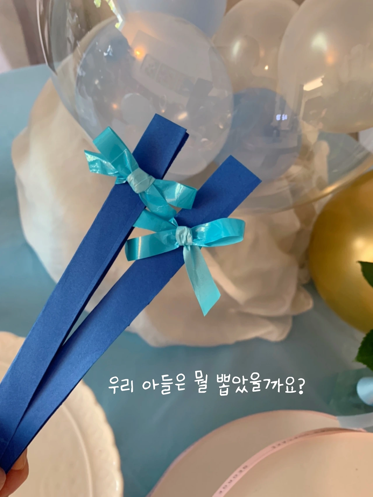 소소하지만 틈틈이 아이디어를 짜내기로 했다. 백일상 전체를 감쌀 시그니처 색상을 정하고 소품을 하나 둘 사 모으기 시작. "우리 백일상 콘셉트는 하늘색 풍선이야. 하늘하늘한 베이비 블루 색깔이어야 해. 케이크도 풍선도, 테이블 보도." 남편에게 일찍이 다짐하듯이 말해두었다. 핑크색만 좋아하던 나인데 아들 백일상 앞에서는 평소 좋아했던 색깔들이 다 소용없다.
