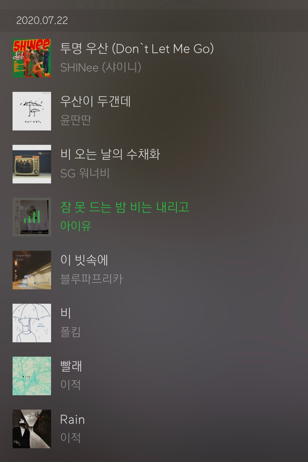 이런저런 생각을 되새기던 중 '비 오는 날 듣기 좋은 노래’, 다음 흘러드는 선곡은 아이유가 부르는 '잠 못 드는 밤, 비는 내리고'. 으아악, 제목부터가 앞으로의 모든 날들을 또다시 암시해주는 것만 같네... 역시나 다음 학기도 미리미리 과제하고 팀 프로젝트 준비하느라 왠지 분주히 밤새우는 날들로 가득할 것만 같아서 또르르. 슬픈 느낌은 한 번도 틀린 적이 없다는데 왠지 나 또한 그럴 것만 같다는 피할 수 없는 예감. 그럼에도 불구하고 비 온 다음에 '빨래'하는 삶, 단계적으로 지향해보기. 빗방울 소리의 리듬감에 맞춰 또독또독 조금씩.