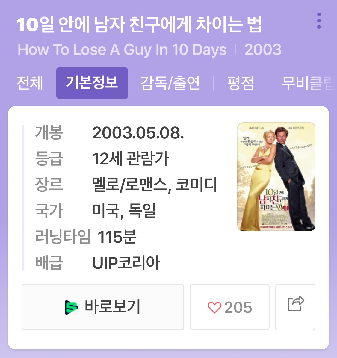 요즘 같은 시국, 영화관에 가기가 꺼려지니 매주 집콕 무비 한 편씩은 필수. 매달 구독하고 있는 스트리밍 서비스를 (HBO MAX) 이리저리 훑어보다가 반가운 영화 한 편을 만났다. 십여 년 전 대학시절에 챙겨 봤던 로맨틱 코미디 <How to lose a guy in 10 days>. 2003년, 한국에서 개봉했던 제목은 <10일 안에 남자 친구에게 차이는 법>. 개봉 연도를 보니 당시에도 영화관에서 개봉 직후 따끈따끈 할 때 보진 못했던 것 같다. 대학 합격 후 그 언젠가의 로맨스를 꿈꾸며 로코물만 찾아 빈지 워칭 (Binge watching)을 하던 시절로 추정된다.