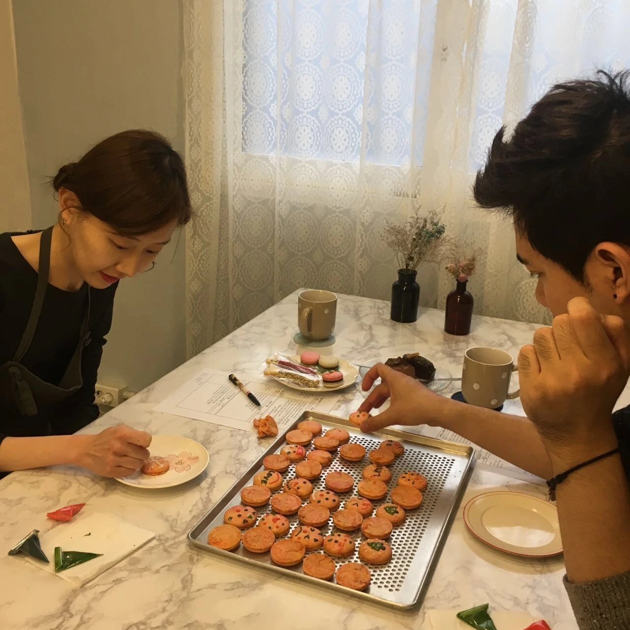 조금은 유치한 듯도 하지만 자주 만나지 못하는 장거리 연애관계에서는 원데이 클래스 같이 무언가를 '배웠던' 기억이 참 좋더라. 중고등학교 시절 입시를 위해 차근차근 배워나갔던 기본적인 교과목들만큼이나 기억에 두고두고 남더라는... 함께 마카롱 원데이 클래스에서 가서 만들어뒀던 그 달콤한 디저트들은 냉동실에 얼려두고 최대한 천천히 오래도록 맛보곤 했다. 남편이 미국으로 떠나고 난 뒤에도 헛헛한 마음 위에 연고를 살뜰히 발라주는 듯, 달콤한 몫을 톡톡히 해냈다.