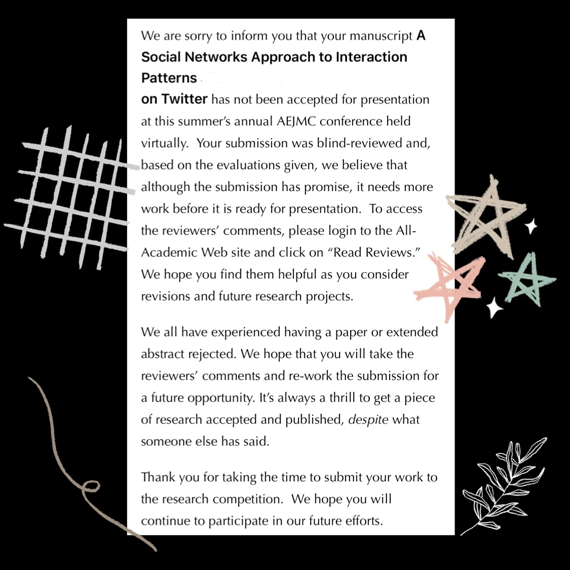 “귀하의 노력은 감사하지만 안타깝게도 이번엔 함께 할 수 없게 되었습니다.” 가슴 아프지만 참 익숙한 통보가 있다. 합격과 불합격을 가르는 인생 중요한 순간들에 ‘휙’ 지나가는 메시지들... 어떤 메시지는 며칠 밤, 잠도 못 자게 들뜨게 하지만 대부분의 메시지들은 한순간 ‘멍한’ 기분을 불현듯 던져주고 가슴 저릿한 활자들이 되어 저 깊숙한 곳에 저릿한 상처로 기록되기도 한다. 늘 한국어 버전으로 받는 게 익숙했는데 이번엔 영어로 받았다. We are sorry to inform you that your manuscript has not been accepted for presentation at this summer’s annual conference held virtually. 아, 네네 역시나 이번 텀엔 함께할 수 없게 되었군요. 미 언론학회 (AEJMC)로부터 도착한 거절 레터 한 대목.
