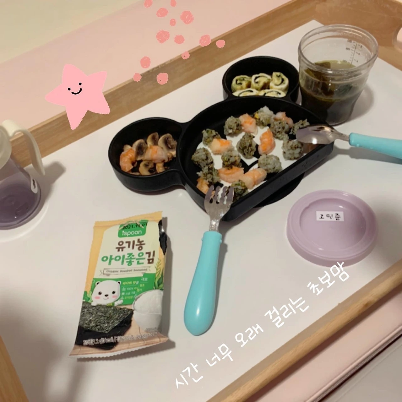 그리하여 5구 식판에 계란말이와 양송이버섯 구이를 종종 썰어내고 야심 차게 첫아기 미트볼 만들기 생산, 공정에도 성공! (거의 공장 하나 가동하는 프로세스와 다를 바 없이 거창하고 심각하게 임했으므로 최강 진지한 단어 선택.) 너무나 신기한 광경을 부엌 최대한 먼 곳에서 떨어져 지켜보며 감격했다. “와아, 아기가 내가 만든 음식을 진. 짜.로. 먹고 있어!”