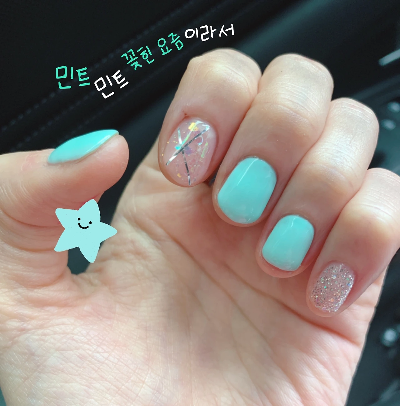 고로 육아하면서 참 팔자도 좋다고 아니꼽게 바라보는 날카로운 시선은 부디 거둬주길 바란다. 현실을 유유히 떠나 최대한 몽환적 세상에 퐁당 뛰어드는 느낌이고 싶을 땐 ‘라벤더’ 색, 진부하게 쳇바퀴도는 육아 일상이 미워 죽겠을 땐 상큼하면서도 평온한 ‘민트’ 색을 권하고 싶다. 아, 그러고 보니 지금, 내 손,,, 너무 지저분하다. 다시 내 손톱과 화해할 날을 기다려보는 어느 오후, 여기 미국.