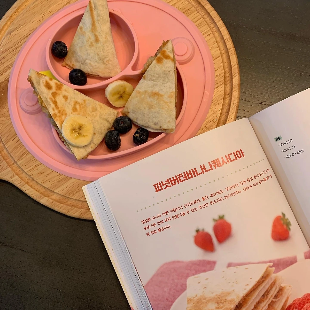 두근두근. 저자의 유아식 책이 조언하는 대로 ‘피넛버터 바나나 퀘사디아’를 만들어서 아기 식탁에 대령했던 날, 아기의 손이 쉴 새 없이 식판을 향했다. ‘밥안모’가 언제적 이야기냐는 듯 (밥을 잘 안 먹는 아기들 모임), 먹고 또 먹고! 무엇보다 그 어느 때보다 식사시간을 즐기는 듯해 엄마의 마음은 그저 뿌듯했던 날.