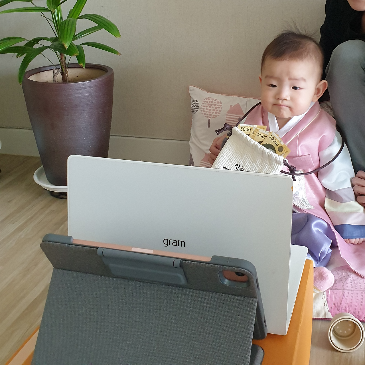 부캐는 미국 엄마지만 한국의 명절은 챙긴다. 결혼 후, 미국 살이 3년 차, 차례음식을 챙기고 부모님 댁에 방문할 수는 없겠으나 우리 집만의 리추얼은 바로 한국 명절 오전 시간 맞춰 부모님께 영상 통화드리기. 추석 날, 화면으로라도 예쁜 손자 재롱 보실 순간만을 손꼽아 기다리실 테니, 아들 예쁘게 꽃단장시키는 건 필수. 아들에게 고운 한복을 입혀 태블릿 pc 앞에 앉힌다. 차례음식을 준비하느라 분주하지도 않고 하루 종일 손님맞이 해야 하는 피로감에 우울할 일도 없으니 우리 엄마 때 명절 연휴 일상과는 정말 딴 세상이다. 어릴 적 추석과 설날에 내내 서서 일하며 바빴던 엄마를 떠올리자면 되려 미안해질 정도.