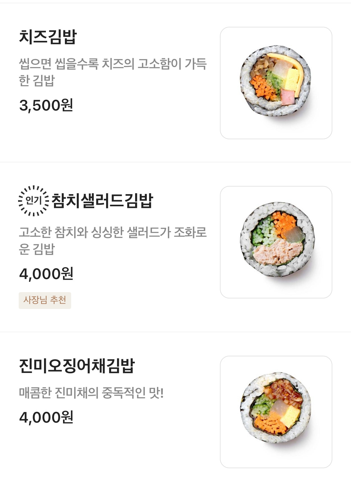 종종 ‘김밥’을 먹고 싶다. 김밥이 최애 음식이 아닌데도 그리운 메뉴인 건 어쩔 수가 없다. 고등학교 시절 야간 자율학습 시간에 잠깐 먹고 오던 ‘김O네’ 김밥이 생각나고 백화점 한편에 종종 팝업스토어로 들어와서 구미를 당기던 ‘리O밥’도 보고 싶다. 학교 현장학습 날 내 도시락에 고이 챙겨가던 김밥은 말해 무엇하리. 한국 돈 환산 금액으로 5천 원 정도만 해도 아니 7천 원 정도만 해도 조금 더 마음 편히 사 먹을 텐데 보스턴 김밥의 가격은 너무도 사악하다. (맛있어서 더 미운 김밥.)