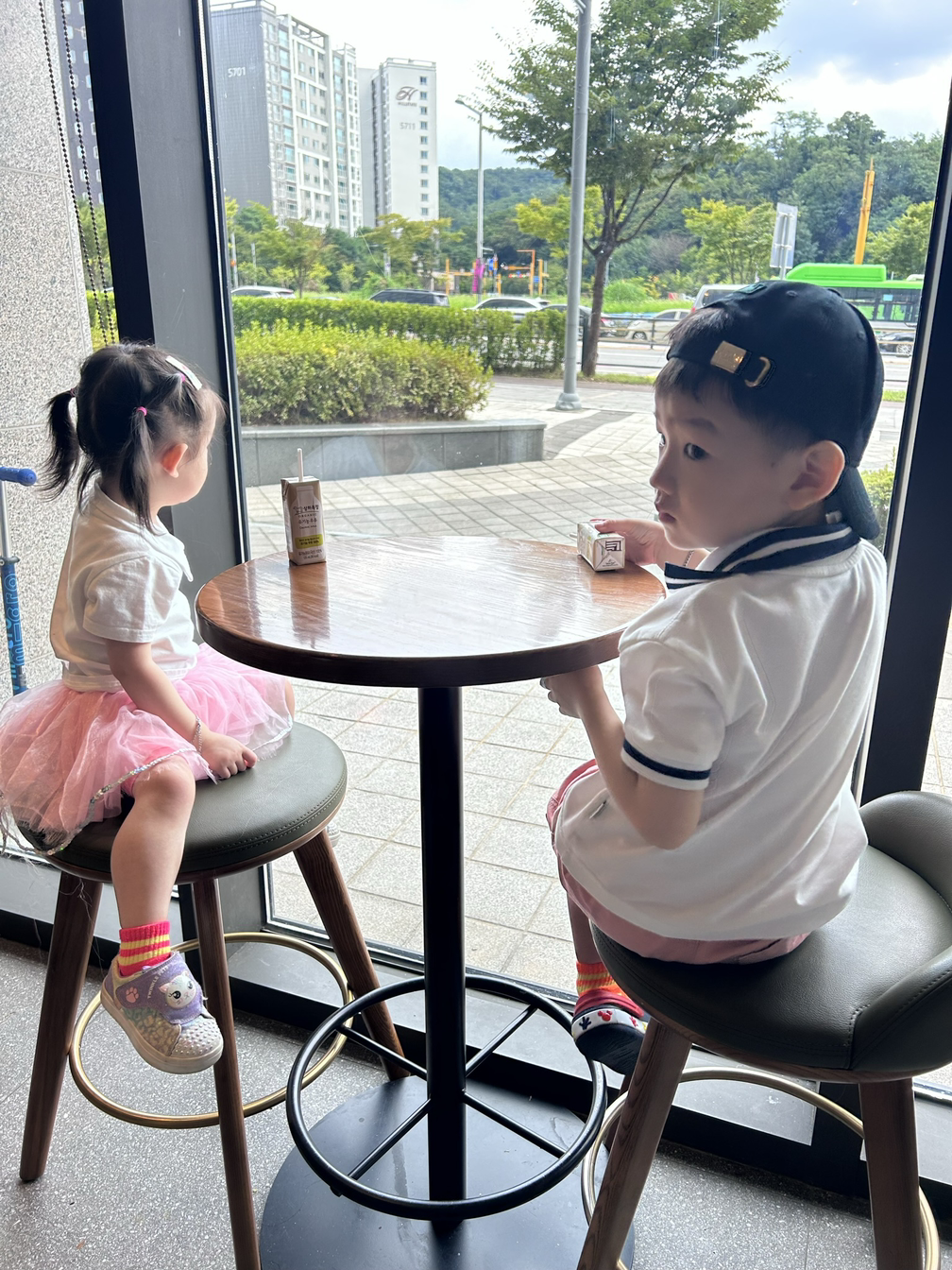 돌잡이 한글 전집을 둘째를 낳고서야 뒤늦게 구입했는데 첫째도 같이 잘 보니 이보다 더 유용할 수는 없지 않나? 발화 수준은 비슷 해도 26개월 먼저 살아낸 첫째의 어휘력과 발음명료도는 사뿐히 둘째를 넘어선다. 대신 둘째는 수다쟁이가 낳은 수다쟁이 딸답게 대화의 ‘핑퐁력’ 그러니까 주고받는 상호작용의 천재다. 둘의 강점이 같이 버무려지면 진짜 맛있는 비빔밥이 된다. 말 잘하는 첫째를 시샘하다 못해 자지러지는 둘째가 이 집에는 없다. 비등비등한데 또 다른 매력이 있어 너네 둘 참 매력 있는 남매다. 하나하나 이렇게 곱씹다 보면 쌍둥이 키우는 기분은 또 그리 나쁘지 않다는 결론에 다다른다. 육아맛집이 여기네!