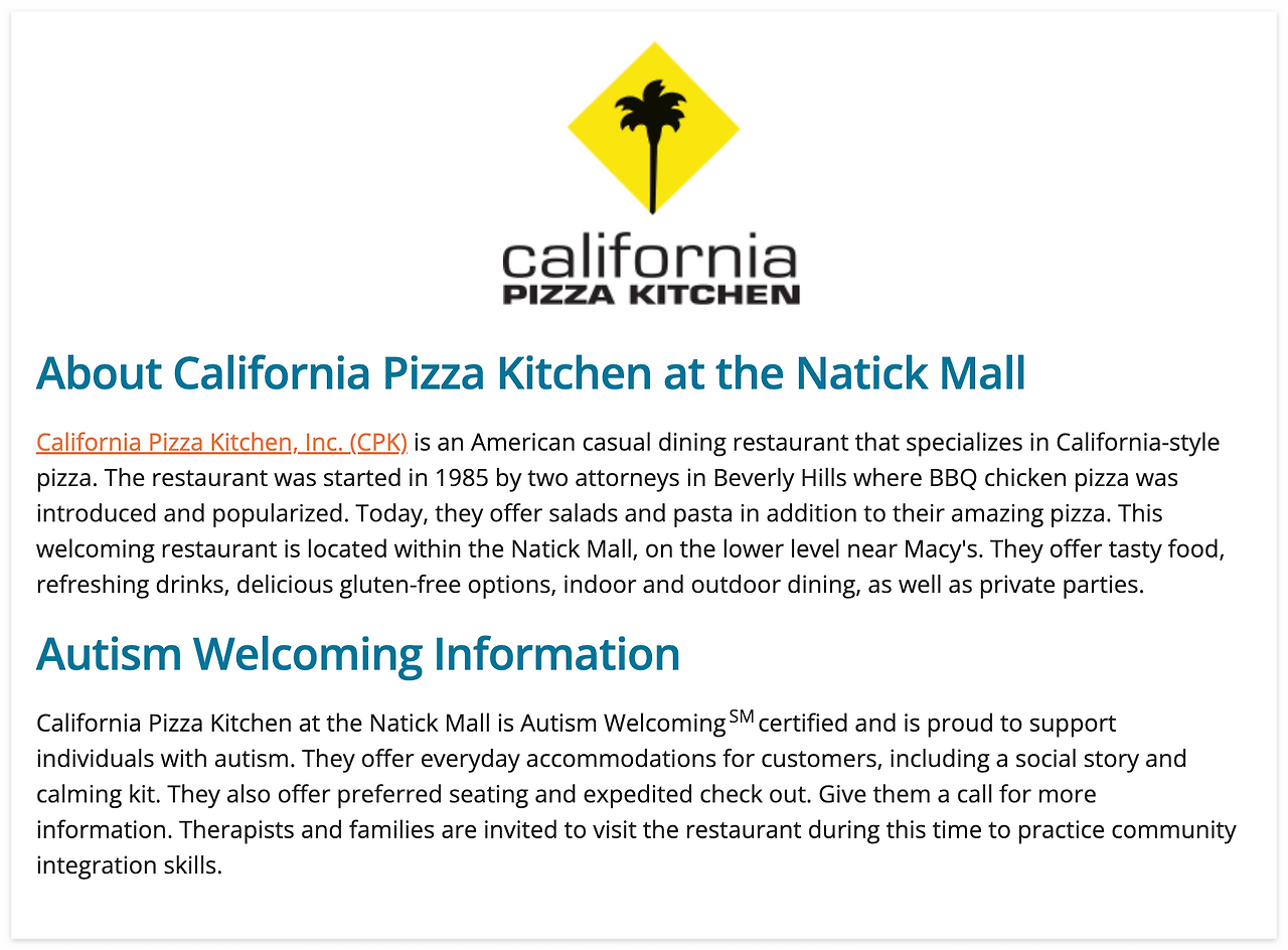 디스커버리 뮤지엄을 자주 들락거리던 어느 날, 전혀 다른 공간에서 또 하나의 'Autism Welcoming'을 만났다. 한국에도 체인점이 있는 피자 레스토랑 앞에 더 큼지막하게 세워진 입간판. 이 피자 레스토랑도 역시 '오티즘 웰커밍'이란다. 브랜드 전체가 해당되는 건 아니고 레스토랑이 위치해 있던 내틱 몰에 유독 오티즘 웰커밍 스토어로 지정된 곳이 많은 것 같았다. 직원에게 문의하면 자폐스펙트럼에 해당되는 사람과 동반 가족구성원을 위해 추가적인 서비스를 해준단다.