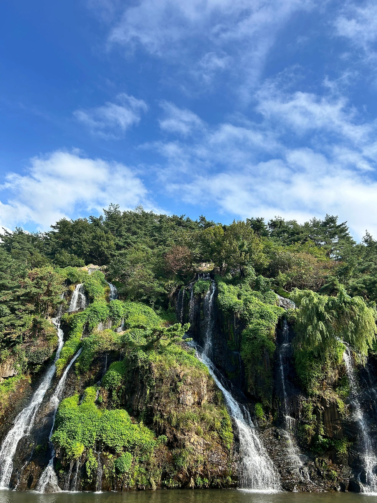 친정 엄마와 맨발로 황톳길을 걷고 향한 곳은 결국 돌고 돌아 카페. 발바닥에 엉겨 붙는 황토라니, 인생 첫 경험에 들뜬 마음은 어떻게 해야 한다? 커피 두 잔 놓고 수다 릴레이 진행시켜 분위기 더 끌어올려줘야 한다! 자연을 논하는데 '인공'이 웬 말이냐 하신다면 하나만 알고 둘은 모르시는 말씀. 폭포의 물줄기는 인공일지라도 황톳길 서너 바퀴 쭉 돌아주고, 굽이굽이 안산 자락길을 걸어 폭포를 낀 카페를 향해 가는 동선은 자연을 한가득 껴안았다. 당장 내 눈앞에 둔 폭포가 찐 자연의 것이 아니래도 이미 그 목적지에 다다를 때쯤이면 마음에 담아두고 저장 누르고 싶은 자연 풍경, 릴스 숏폼으로 따지면 백여 개쯤은 된다는 말씀. 스크린 하나 터치 안 하고 자연광 내리쬐며 두 눈에 저장, 옆 사람에게 조곤조곤 공유할 수 있었으니 이 얼마나 건강한 여정인가.